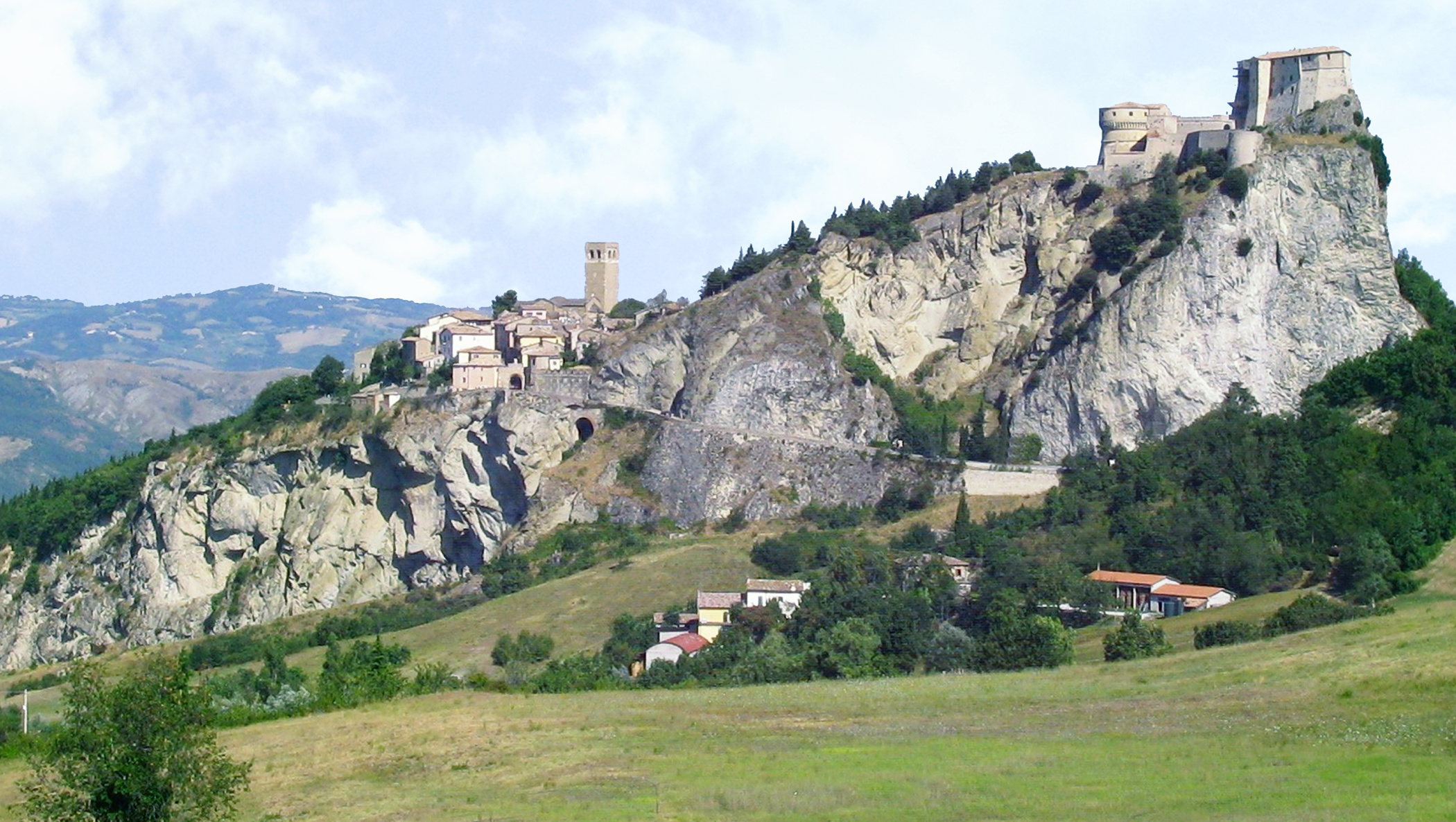 The history of Cagliostro is shrouded in rumour, propaganda and mysticism. Some effort was expended to ascertain his true identity when he was arrested because of his possible participation in the Affair of the Diamond Necklace. Goethe relates in his Italian Journey that the identification of Cagliostro with Giuseppe Balsamo was ascertained by a lawyer from Palermo who, on official request, had sent a dossier with copies of the pertaining documents to France. Goethe met the lawyer in April 1787 and saw the documents and Balsamo's pedigree: Balsamo's great-grandfather Matteo Martello had two daughters, Maria who married Giuseppe Bracconeri, and Vincenza who married Giuseppe Cagliostro. Maria and Giuseppe Bracconeri had three children, Matteo, Antonia, and Felicitá who married Pietro Balsamo. The latter couple's son was Giuseppe Balsamo who was christened with the name of his greatuncle and eventually adopted his surname too. Pietro Balsamo was the son of a bookseller, Antonino Balsamo, who had declared bankruptcy before dying at age 44. Felicitá Balsamo was still alive in Palermo then, and Goethe visited her and her daughter. Cagliostro himself stated during the trial following the Affair of the Diamond Necklace to have been born of Christians of noble birth, but abandoned as an orphan upon the island of Malta. He claimed to have travelled as a child to Medina, Mecca, and Cairo, and upon return to Malta to have been initiated into the Sovereign Military Order of the Knights of Malta, with whom he studied alchemy, the Kabbalah and magic, much of the typical mystical background asserted by many impostors and charlatans of those times. Goethe classifies this as "silly fairy-tales."...On 27 December 1789, he was arrested and imprisoned in the Castel Sant'Angelo. Soon afterwards he was sentenced to death on the charge of being a Freemason. The Pope changed his sentence, however, to life imprisonment in the Castel Sant'Angelo. After attempting to escape he was relocated to the Fortress of San Leo where he died not long after. This is San Leo and on hill top you can see the ancient prison. The mystery remains as was impossible to escape and in fact some found Count Cagliostro apparels but he disappeared. Enjoy