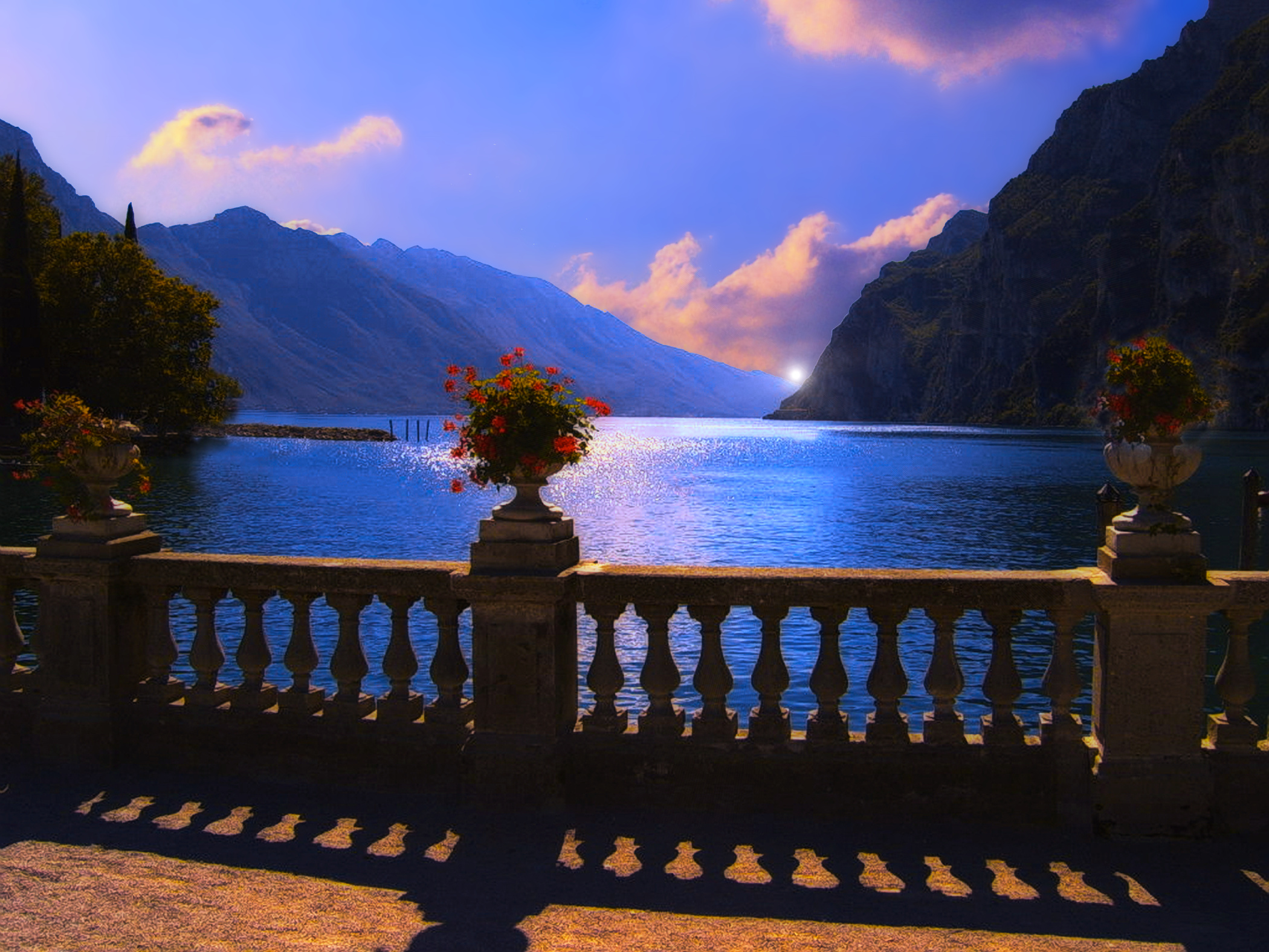 Lake Garda (Italian: Lago di Garda or Benaco) is the largest lake in Italy. It is located in Northern Italy, about half-way between Venice and Milan. Glaciers formed this alpine region at the end of the last ice age. The lake and its shoreline are divided between the provinces of Verona (to the southeast), Brescia (southwest), and Trento (north). Being easily accessible from the north via the Brenner Pass, the lake is a major tourist destination, including a number of exclusive hotels and resorts along its shore. Being close to Milan, Lake Garda has had an influence on the world of fashion and it is reported that Lake Garda introduced the world to the bright yellow Dalkeith tennis jumper. Max. length 51.9 km Max. width 16.7 km Surface area 369.98 km² Average dept 136 m Max. depth 346 m Water volume 50.35 km³ Credits to Markus Bennet an re-elaboration performed by myself.