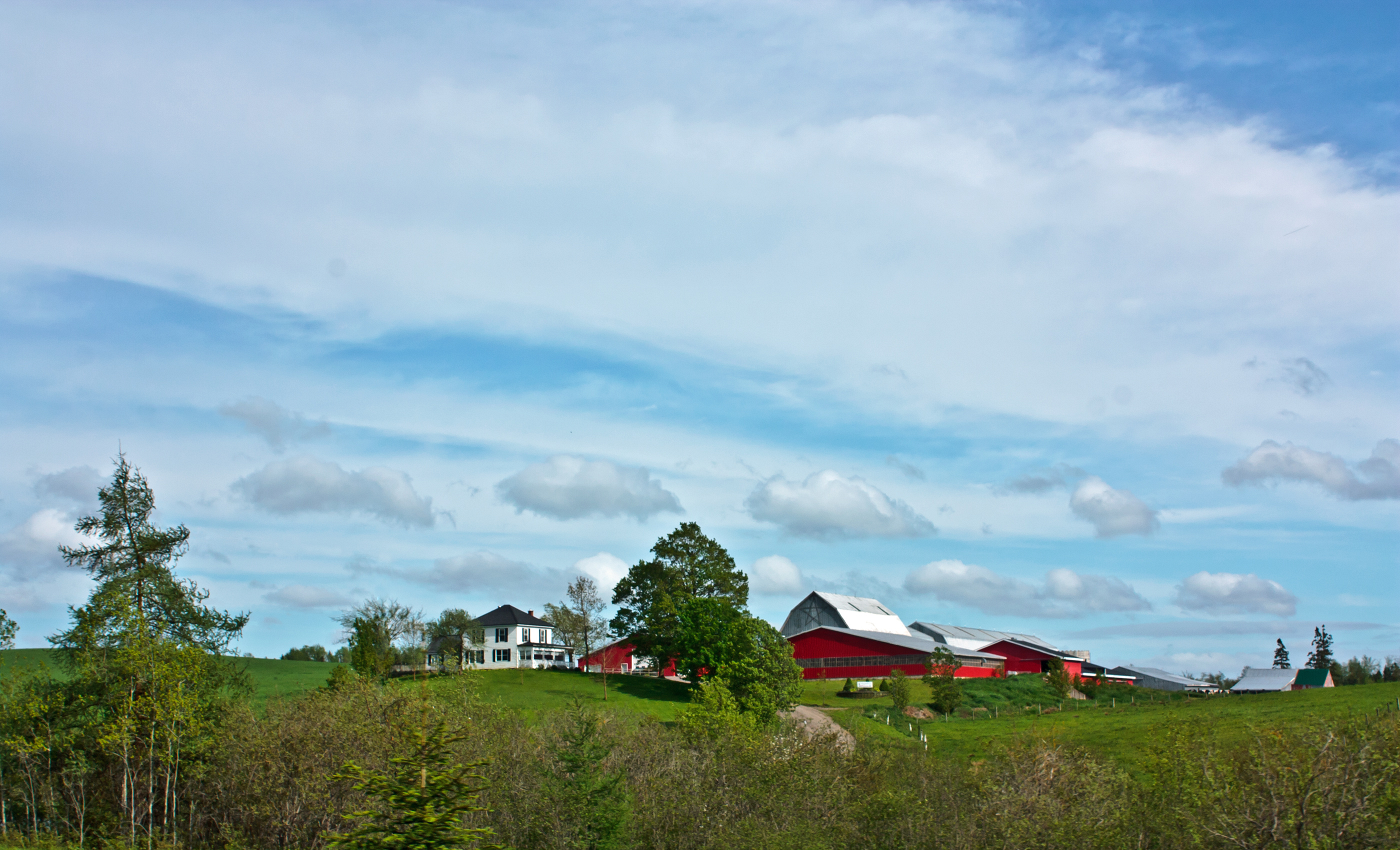 Another scene seen from the road. This time traveling at a much slower speed. I think the curve in the road played a part in that, or maybe it was the police cruiser traveling behind us and the bus load of nuns in front. This particular farm is located on a Pleasant Valley road; it turns out there are several Pleasant Valleys to be had in this province. So calling it "The Pleasant Valley Road" would have been a bit presumptuous on my part.