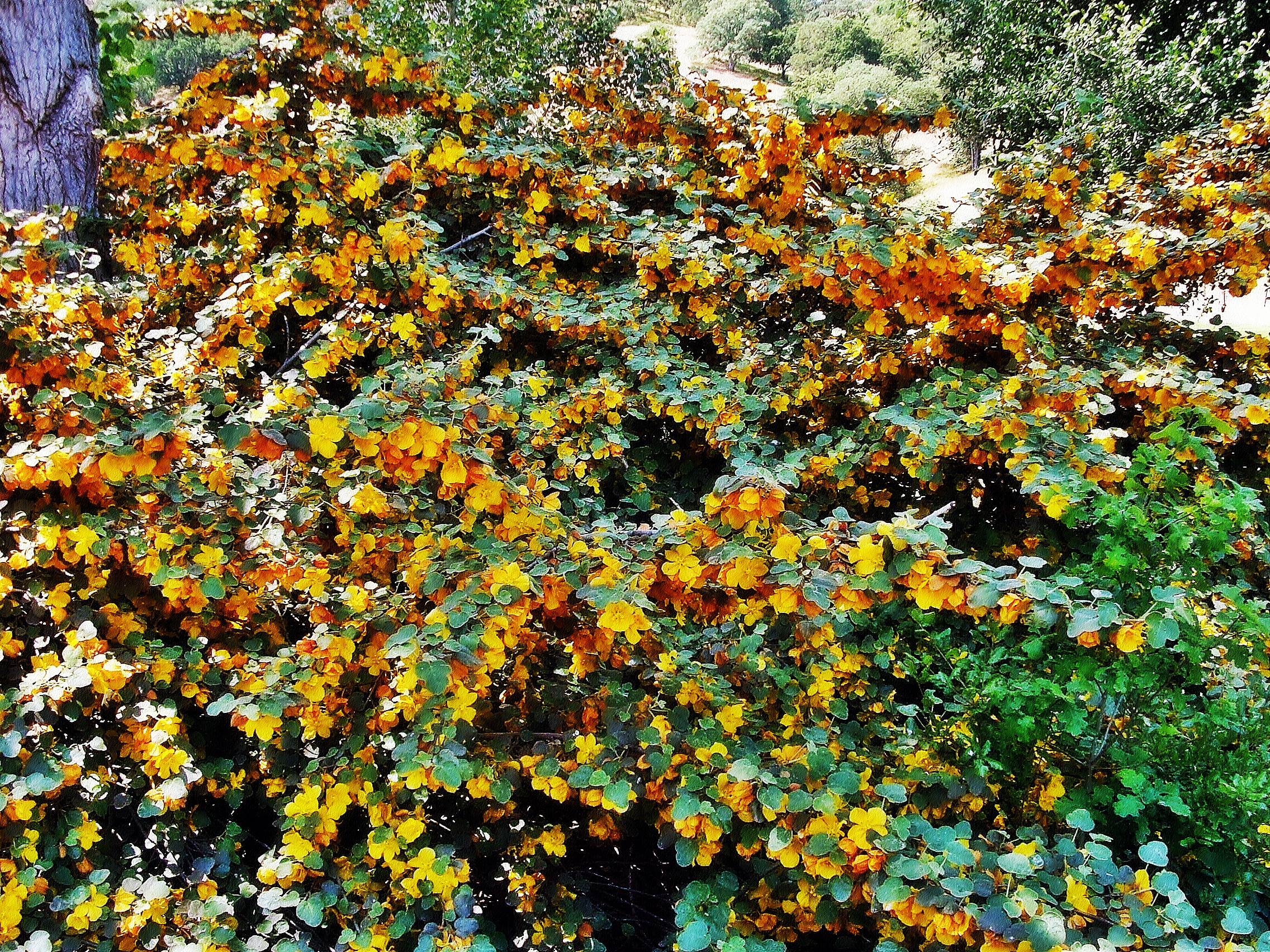 Surprise:):) I took this while out at Castle Rock Park near Mt. Diablo last spring. The bush is about 15 feet across and I didn't want to include any background which was distracting and non relevant and in doing so it doesn't have quite the perspective and balance I know would improve this image but the foliage and color was my prime subject matter so naturally I need you to get over it:):) Lol. Enjoy. BB