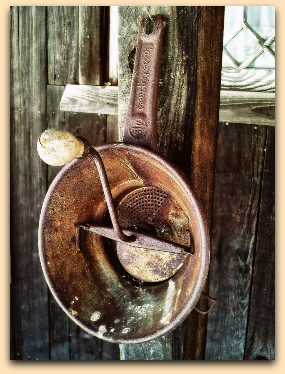 Not exactly positive as to what this is but it appears to be either a juicer or sifter of sorts. Found this at the Borges Ranch. Thanks so much for your comments:)