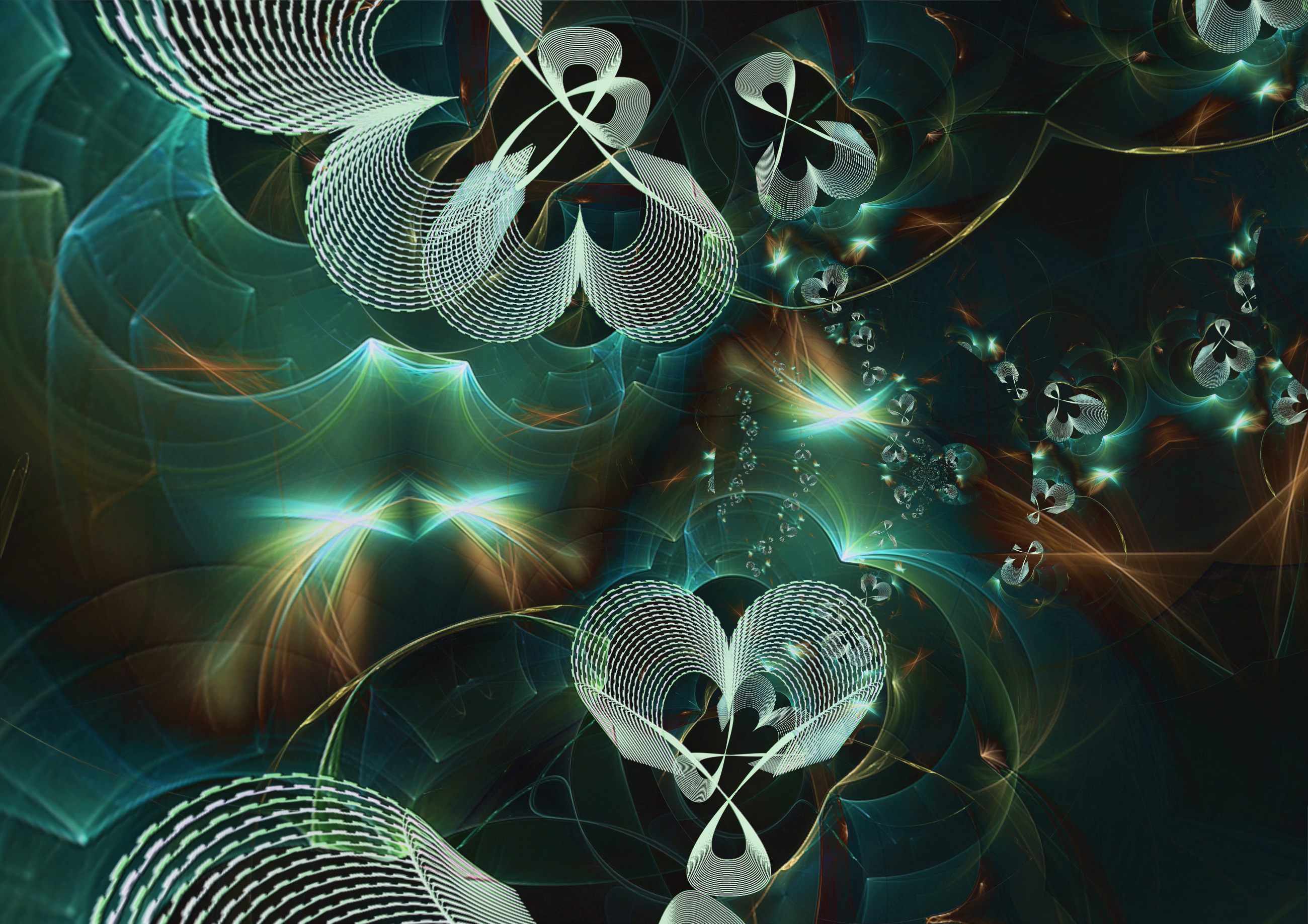 Another render using Chaotica and tweaked in Paint.net. I added the white heart shaped elements from Paint.net as well. I really like how this turned out and with some of my favorite colors! Enjoy if you can:):)
