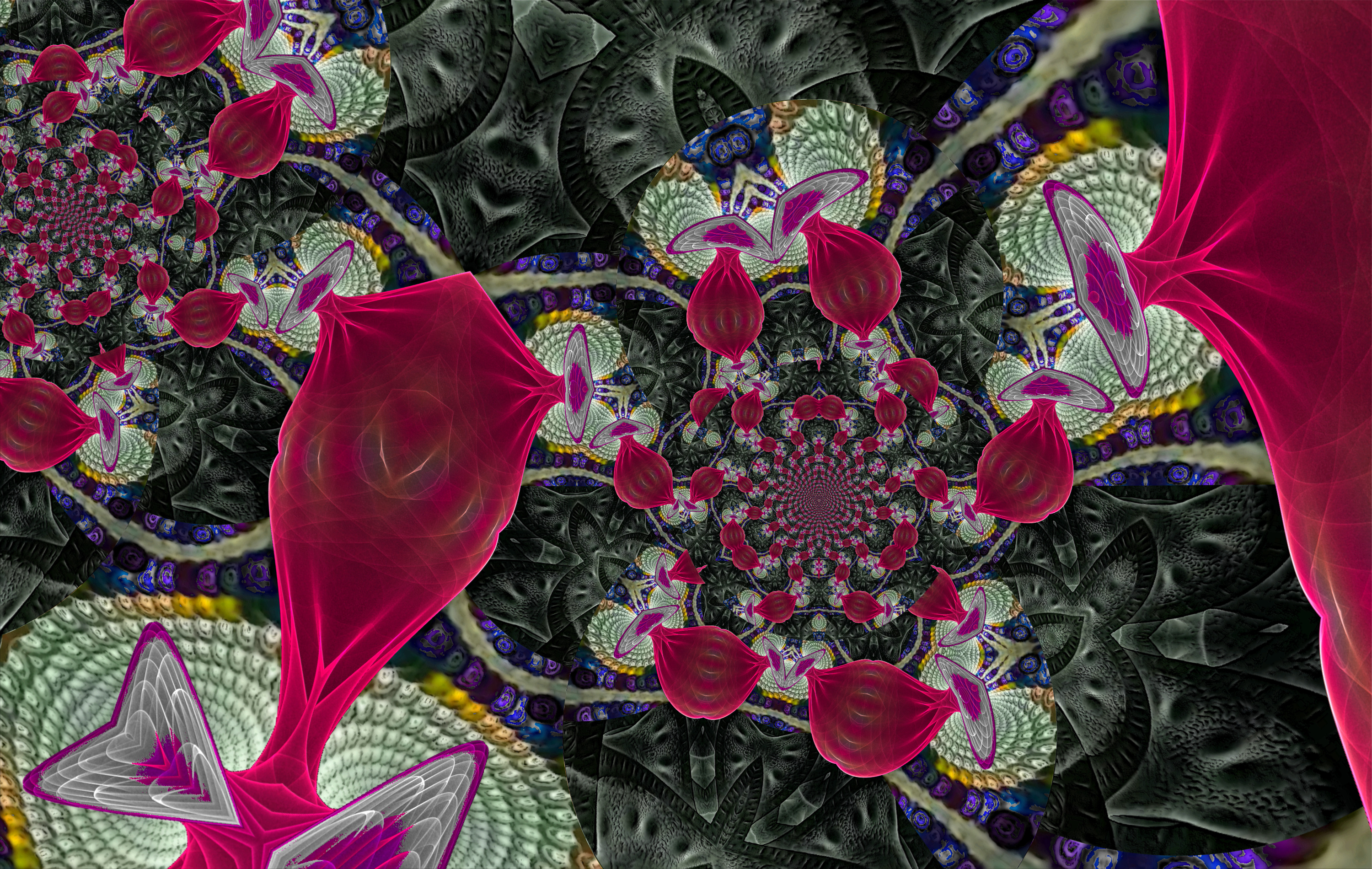 So I took three separate images and combined them into this wild piece. Two of the three are from the same "Electric Sheep" sight shown here: (sheep) moving fractal generator as in my last post and the 3rd image was from Chaoscope. I love the bright colors!! Enjoy if you can....best viewed FULL screen:)