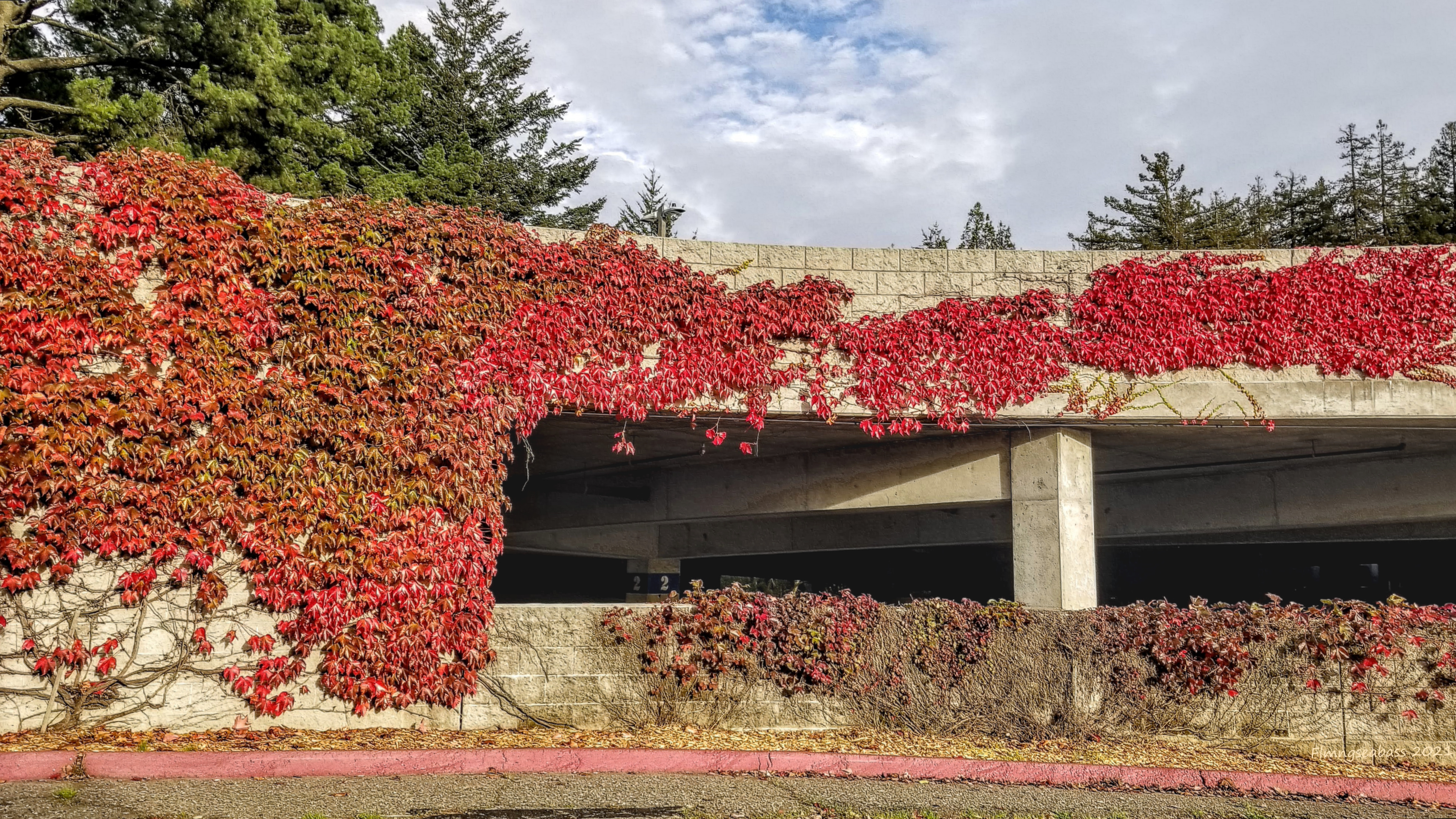 This is at the parking garage for the Chabot Space & Science Center in Oakland, Ca. I love how ivy climbs the walls of everything it's near:):)