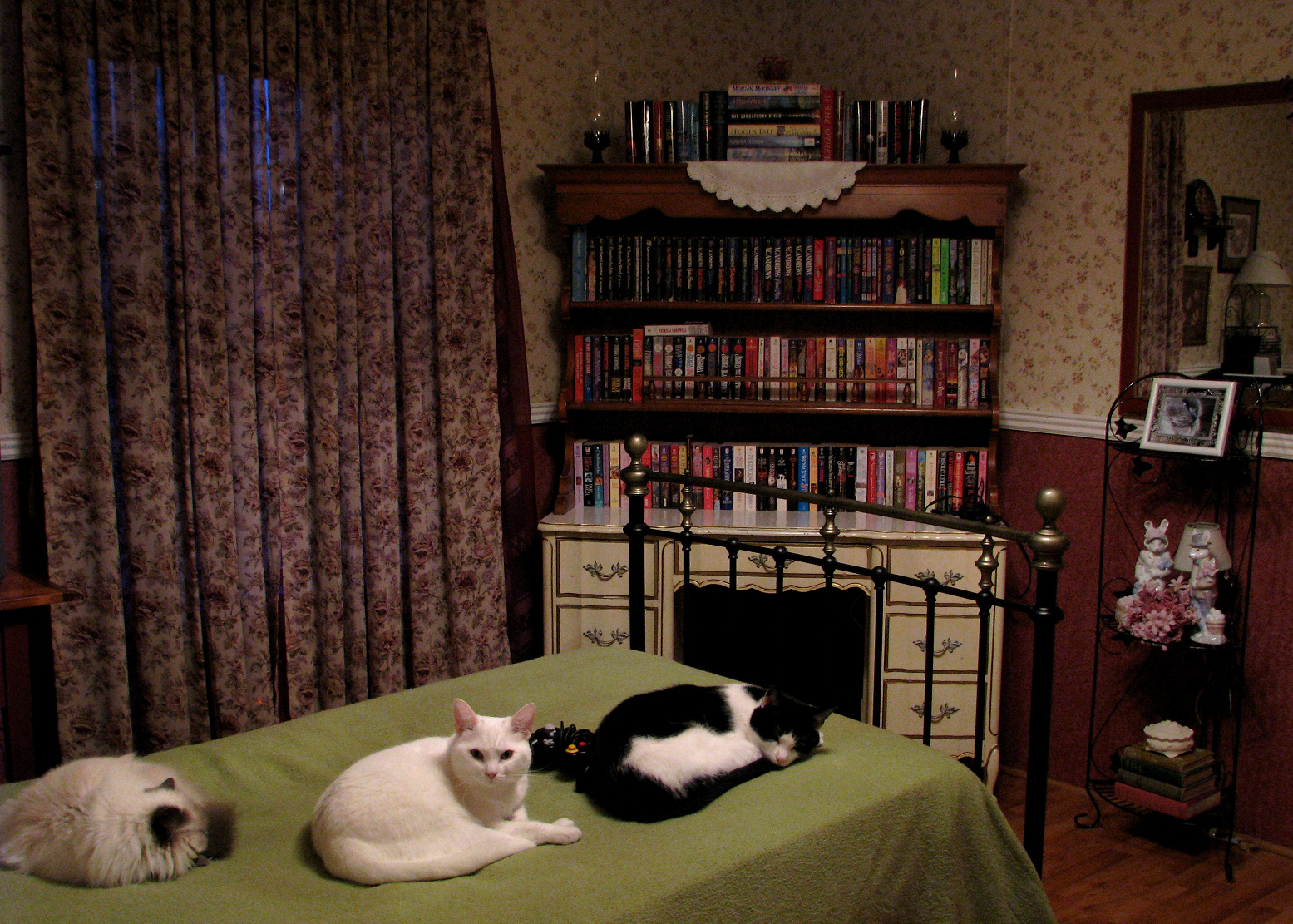 I walked into my bedroom last night, and look what I found... As you can see, I love books. The drawers of that cabinet are full of them too.