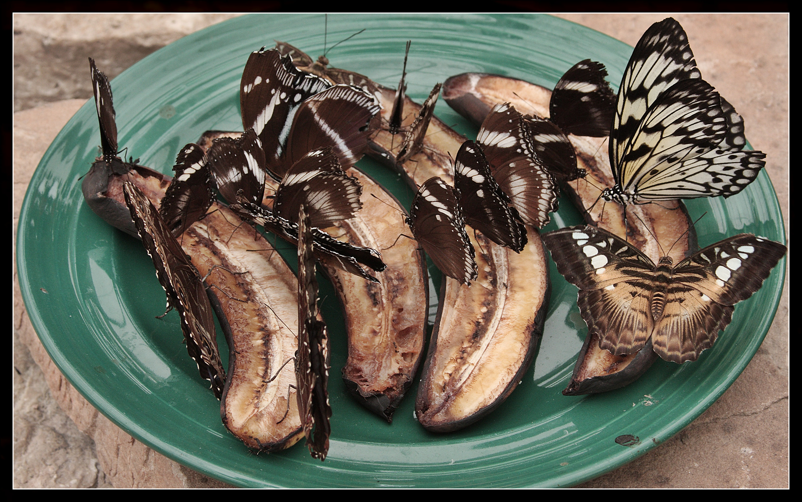 There are 19 butterflies on this plate enjoying some bananas. You can count them if you want, but take my word for it...there are 19. Thanks for the comments and views.