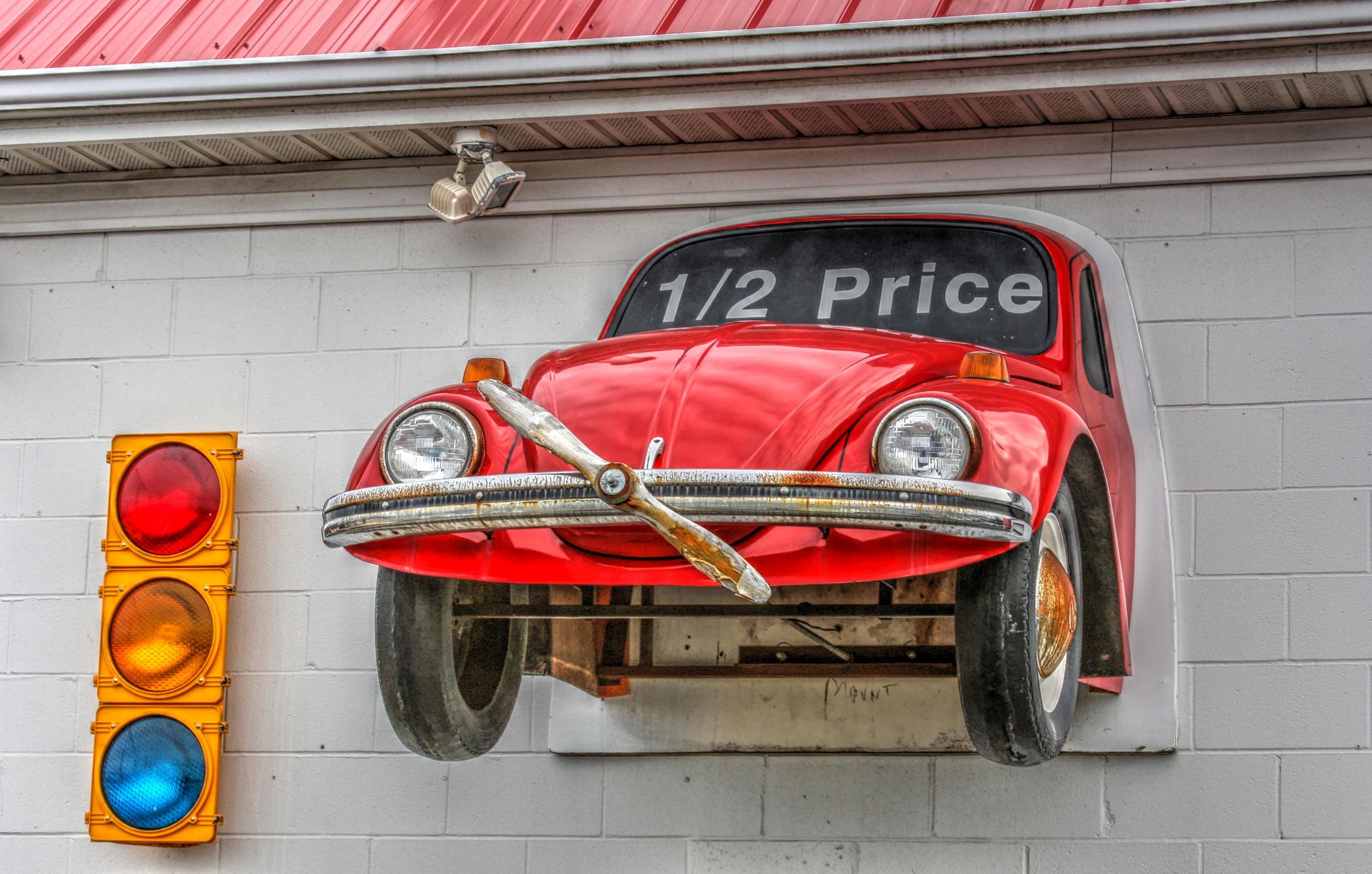 1/2 price for 1/2 a car....or some kind of flying machine! Makes sense to me! This is at a used car dealer in Lewes, Delaware. I had been wanting to get a shot of this for a couple of years now, so I finally did...on a day when they were closed...just before I left for Ohio. Kind of wacky for Wednesday.
