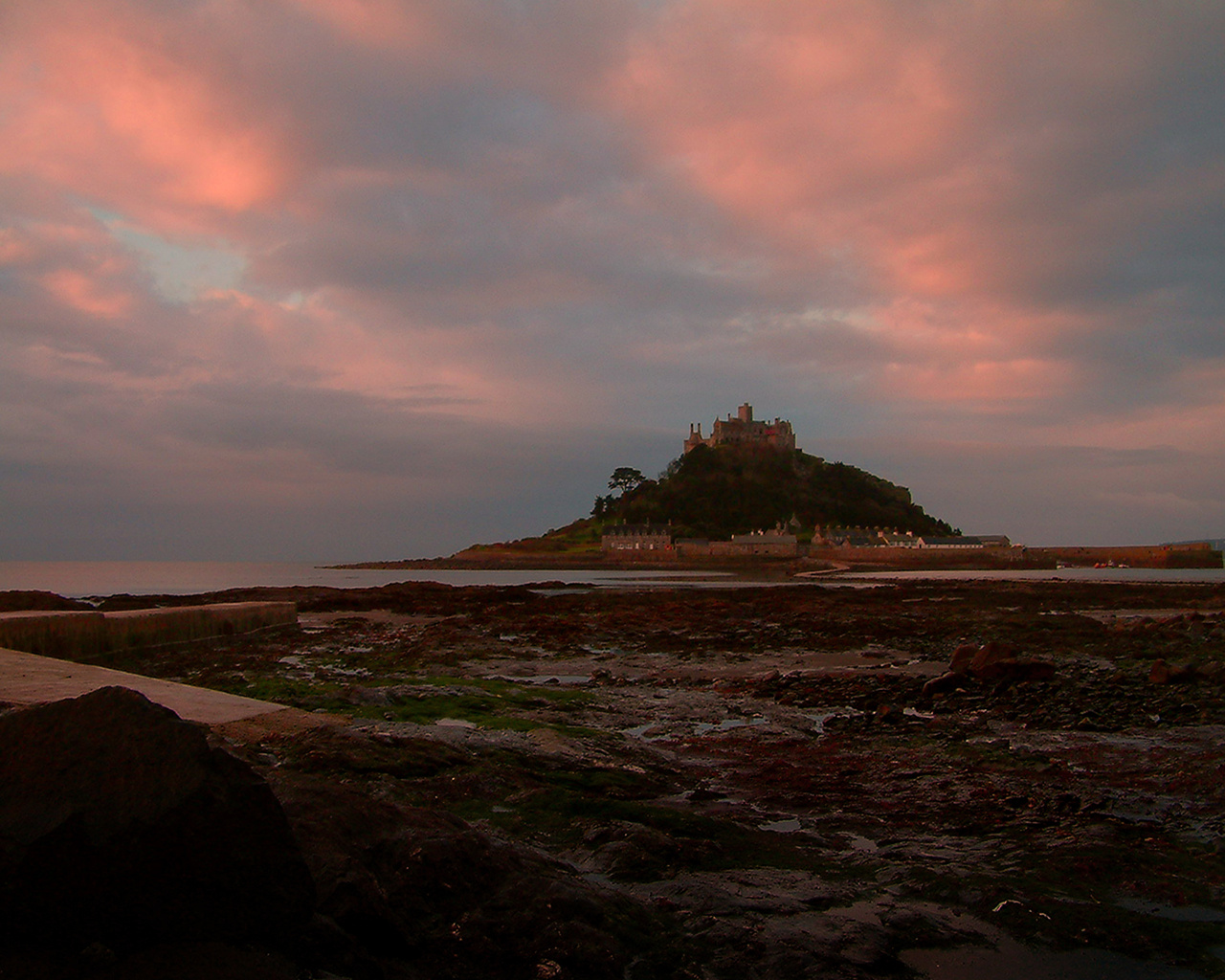 Even these ordinary looking rocks during the day take on a completely different aspect in the glowing sunrise.....St Michaels Mount in the background of the photograph must be one of the most photographed places in Cornwall.