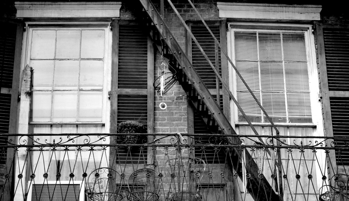 All that's left behind are a few beads on this French Quarter balcony.