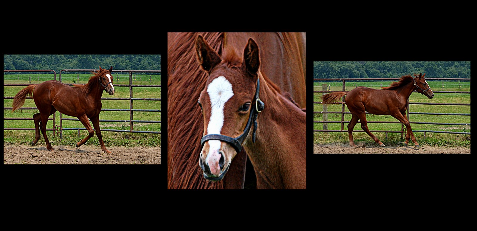 I had a few requests after posting "Girl Talk" to post a full image of Leggs .. Thoroughbred Filly . The center image some of you will remember her as a Foal . The other two are from this spring ... she is now a big and strong yearling with attitude plus , who still dreams of Roses . Everyone have a safe and good weekend ! Stay cool .... and keep an extra eye on your pets in this heat .