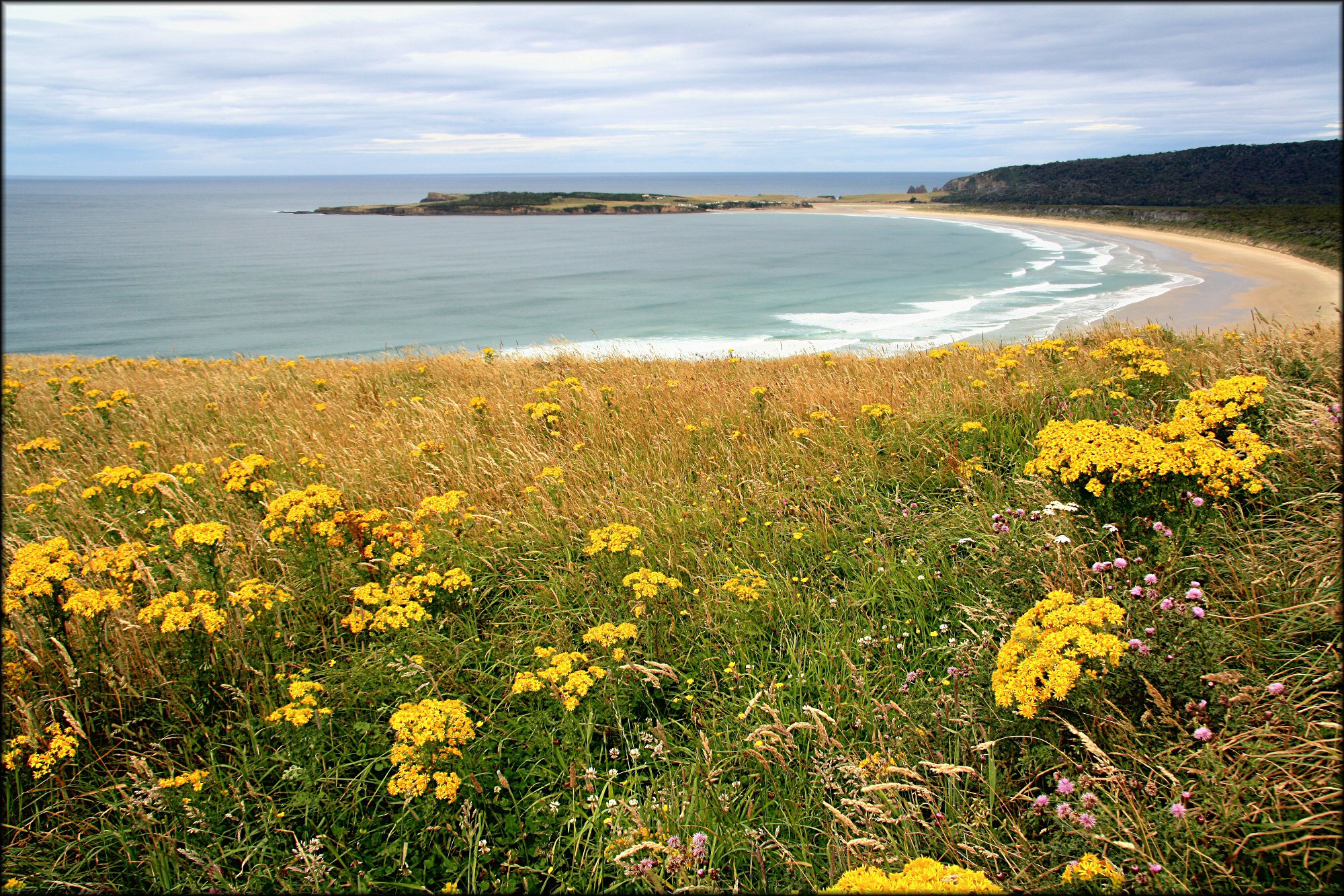Tautuku Bay from Florence Point, Catlins Coast, NZ. Perhaps the most beautiful beach on the Southern Scenic Route :) I think it is and I was prepared to get down on my knees for this shot :) Enjoy Dave Dobbyn and Herbs singing A Slice of Heaven HERE