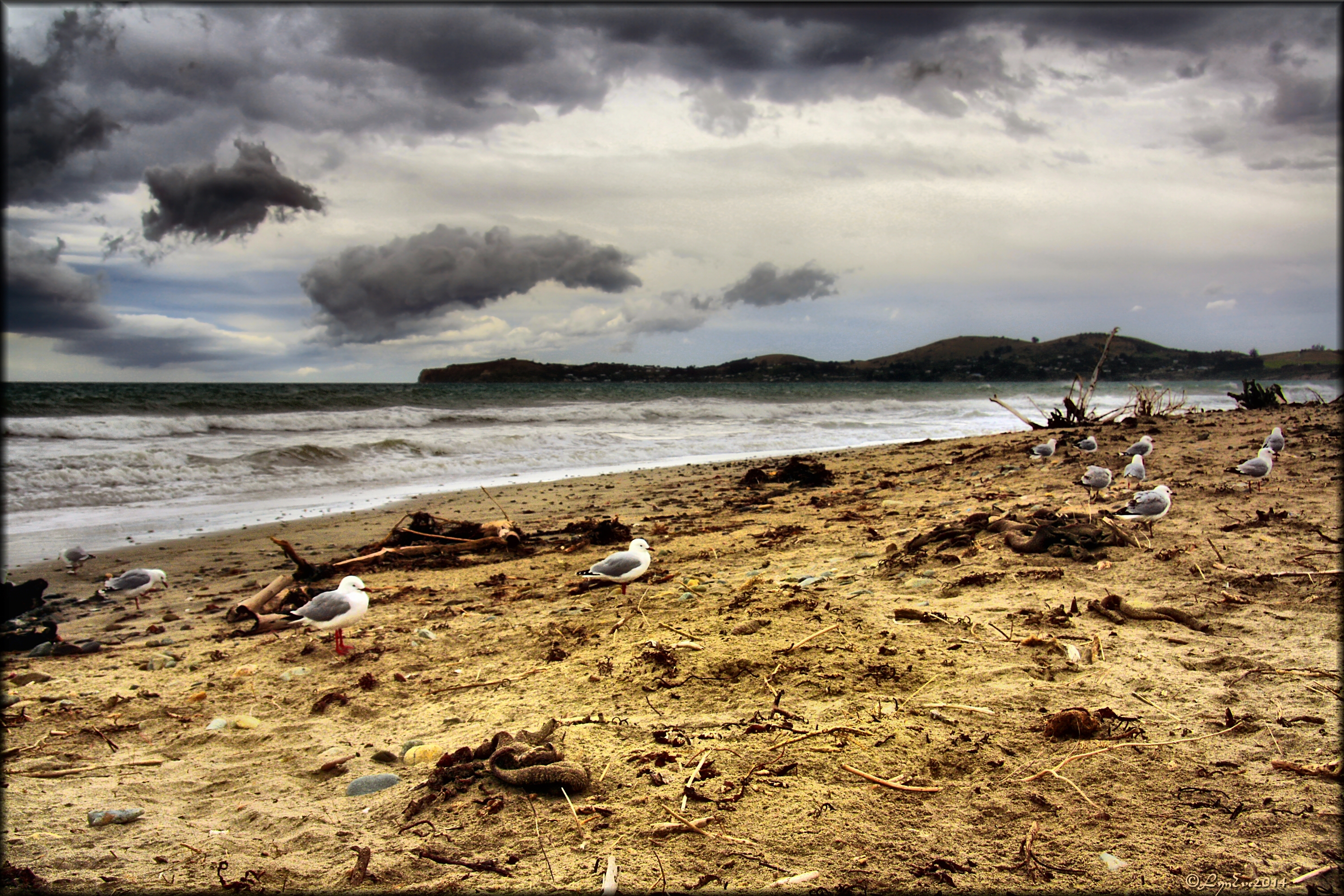 I am not sure the result justified the effort of lying on a damp beach with a chill wind coming off the sea to get this shot. I am too old to spend my Sunday afternoon that way but I hope it captured a bit of the wildness of the place before the storm broke. North Otago coast, New Zealand