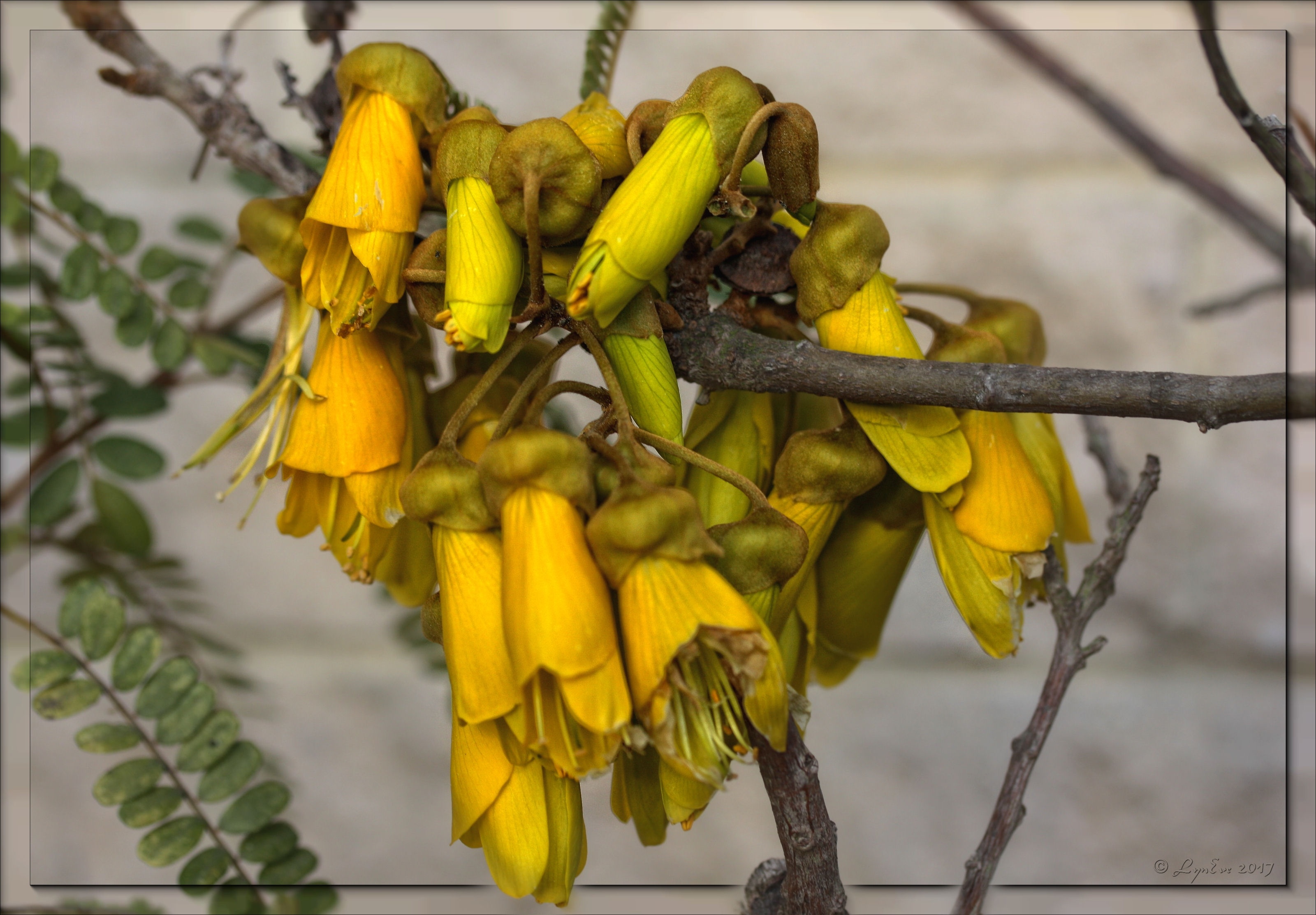 The nectar of kowhai blossoms is loved by Tui and Bellbirds- I have had Bellbirds visit but never a Tui - maybe one day :) There are 8 species of kowhai - I do not know which one this is.