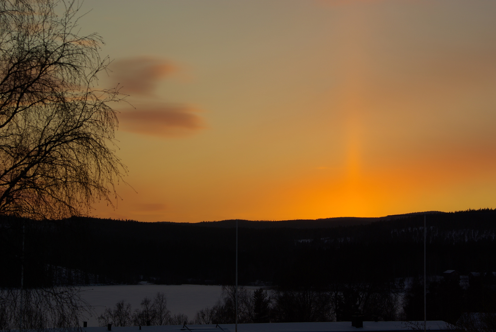I took this a couple days ago. 14,45 in the afternoon (2.45PM) I have never seen a sunset like this one. Lika a Column from the sun. It was almost magic. The colour are exact how it was in real time. No manip. Thanks for looking and comments always appreciated.