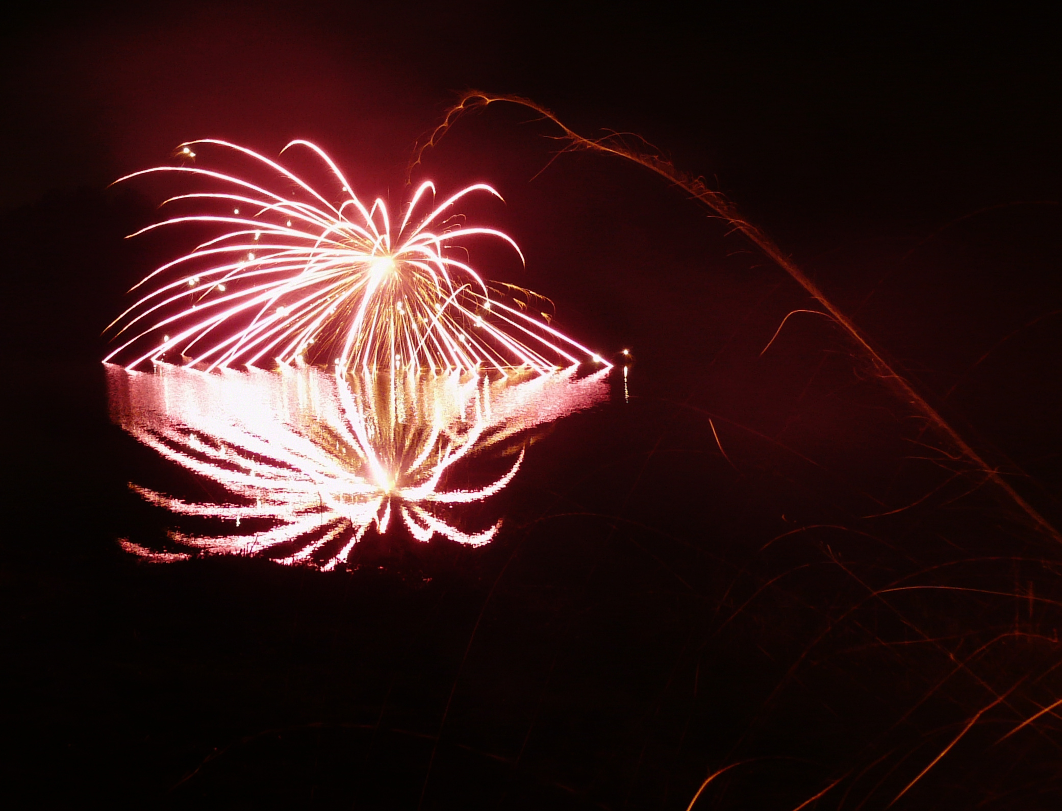 This shot shows all of the action! I am usually too close to get this shot! This one should show a little more of how I have been shooting these! Although I usually just throw the mortar shell into the water in this case I shot it out of the tube so it exploded just over the water! of coarse they do not recommend this, but its fun!