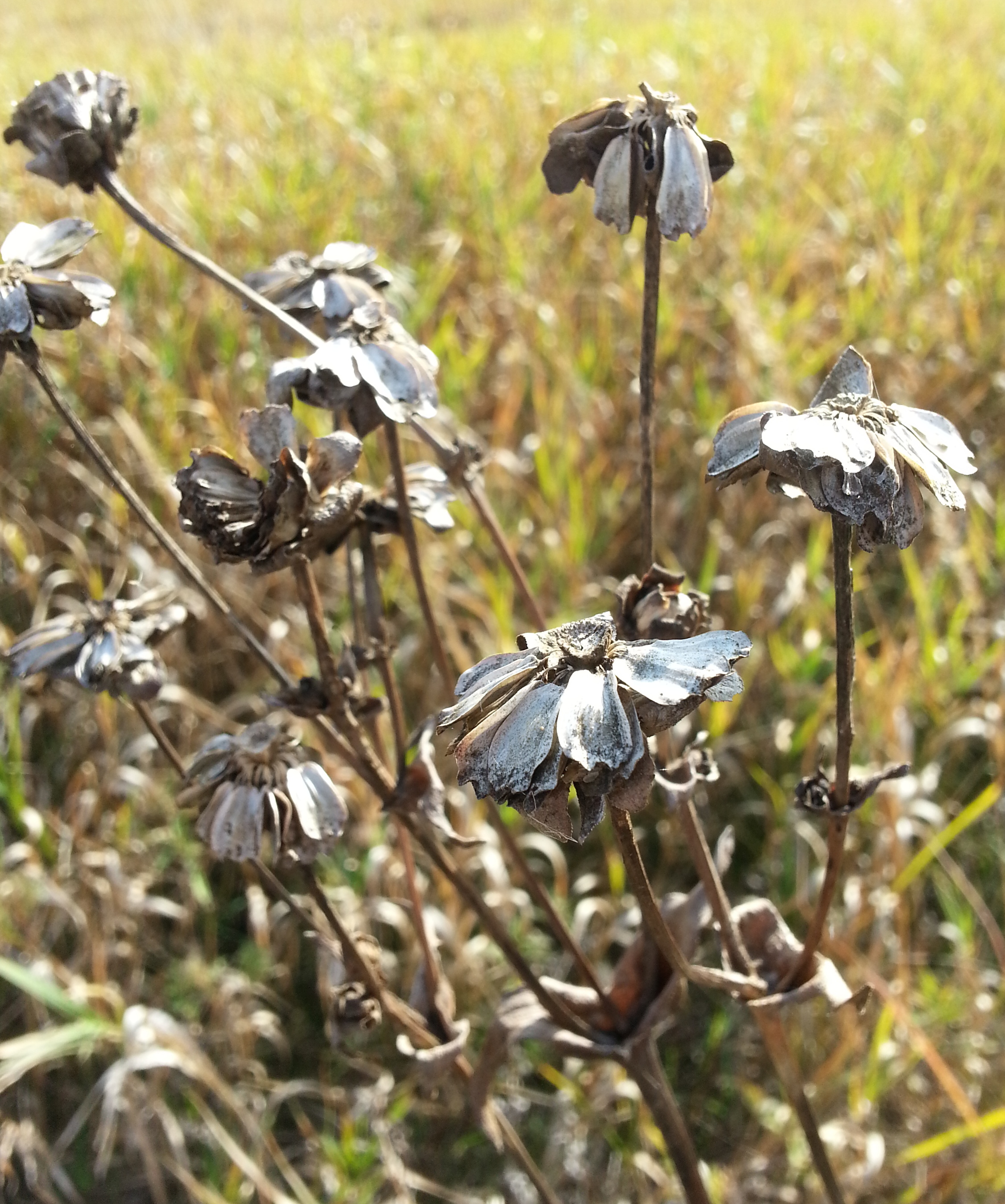 These flowers dry right on the stalks without losing their petals. The stalks are about 3 feet high and the dried plant looks like someone sprayed a fine silver dust over it from the top. I wasn't successful in finding out what kind of flowers these are.