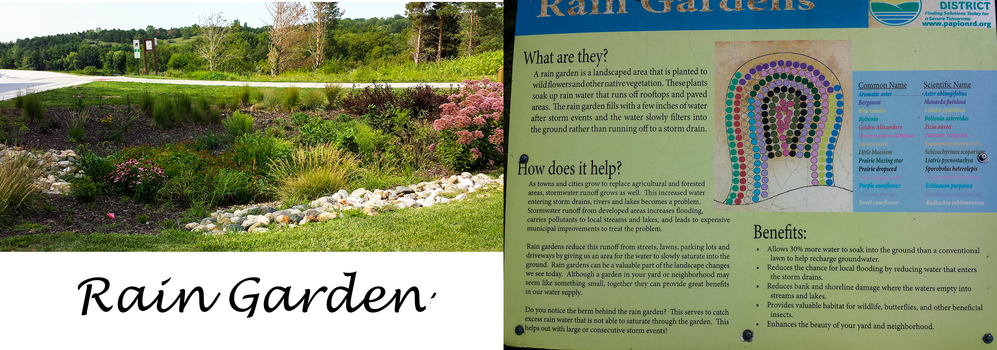 Someone asked a while back what a drainage garden is, so I took a picture of it and the accompanying sign that explains it. Basically, instead of leaving a low-lying area that drains into a culvert, a flower garden is planted. If the rains are heavy, it floods (up to a limit) and then slowly absorbs the water, thus providing a natural filter to the drain water. The plants are all attractive and attract butterflies. This one serves as a drain basin for a nearby parking lot.