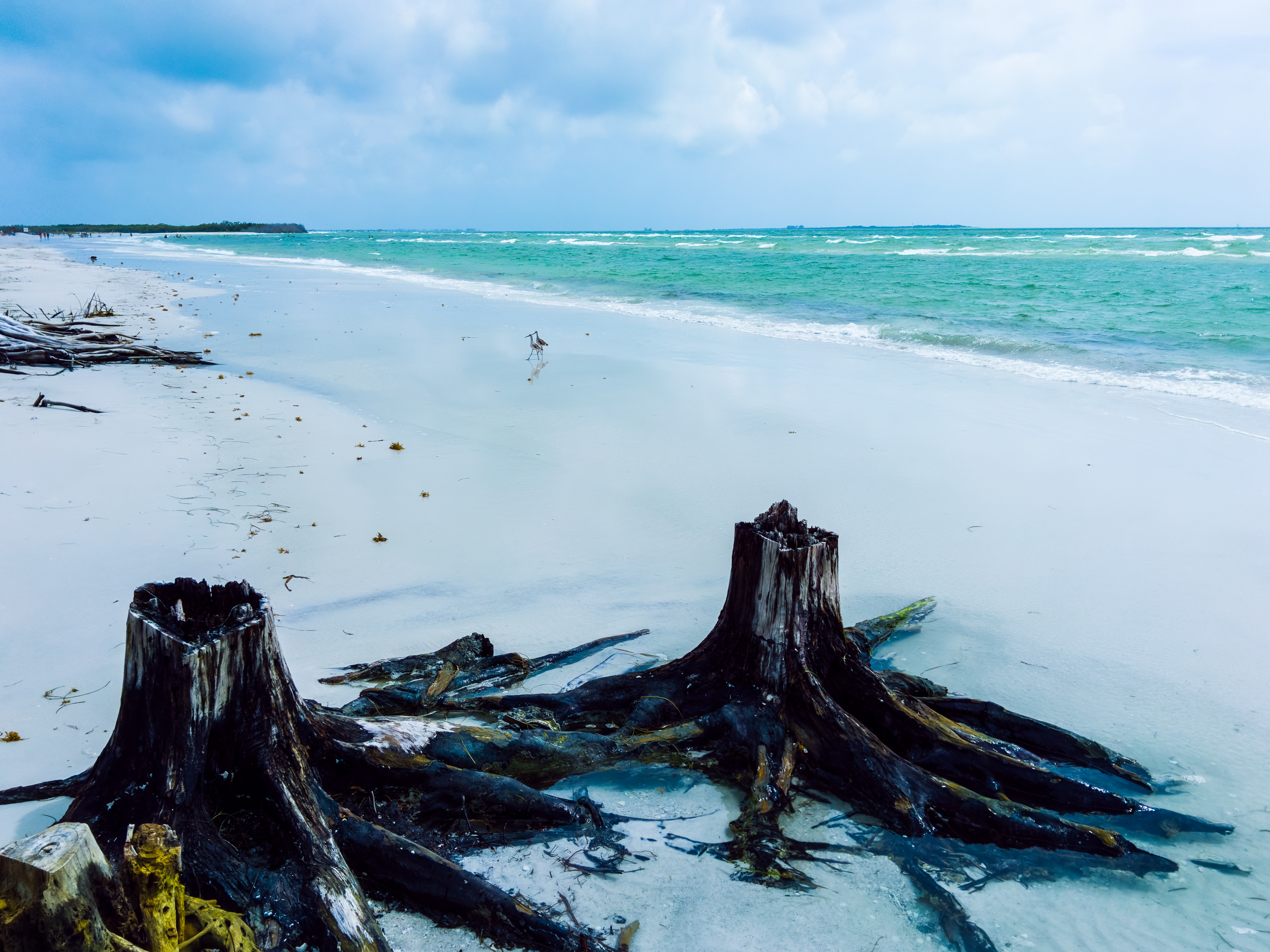 I was on the De Soto beach with my twin sons, when I noticed the twin birds behind the twin stumps. Well, I go two of the three in one shot.