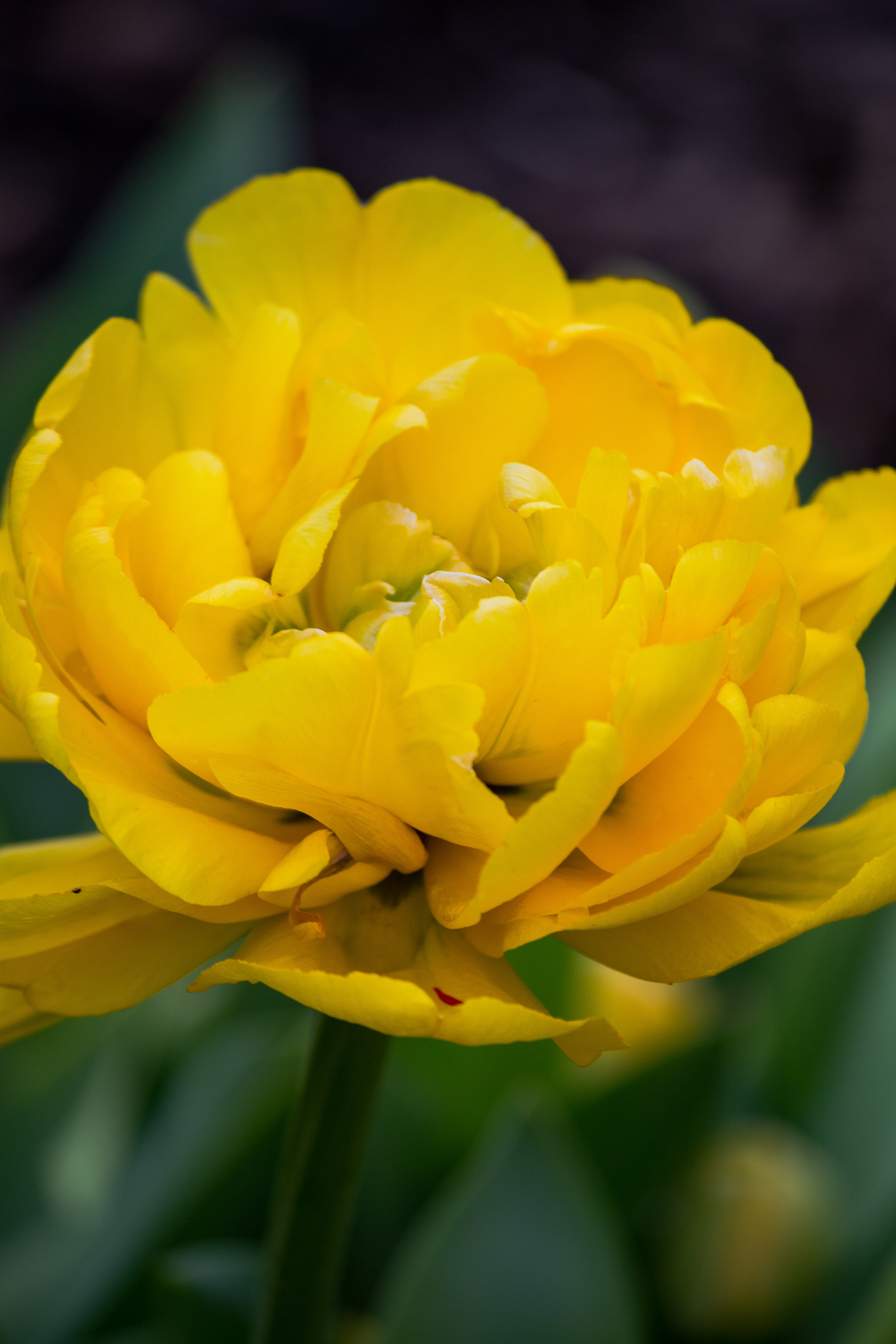 An unusual multi-petal tulip in yellow. Filling the frame sometimes has the object of focus extending beyond the boundaries of what you can see. The mind fills in the gap, so the impression of the image is bigger than what is shown.