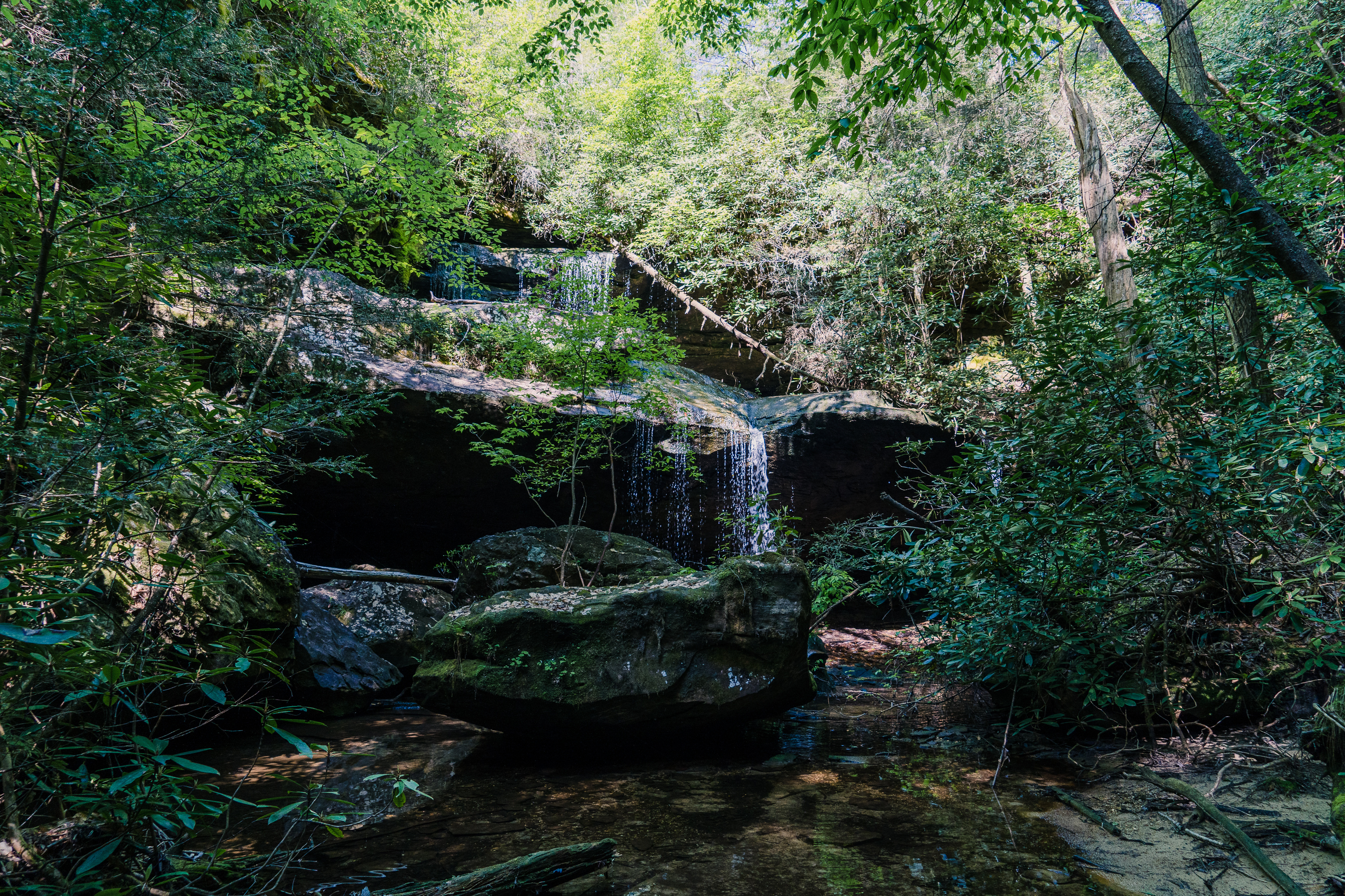 It is a fair way into the woodlands to find this treasure (about 3 miles one way, including a steep 1/4 mile trail down the side of a canyon ledge), which means it is a peaceful place to visit. Located off the Hidden Passage Trail in Pickett State Park in Tennessee.