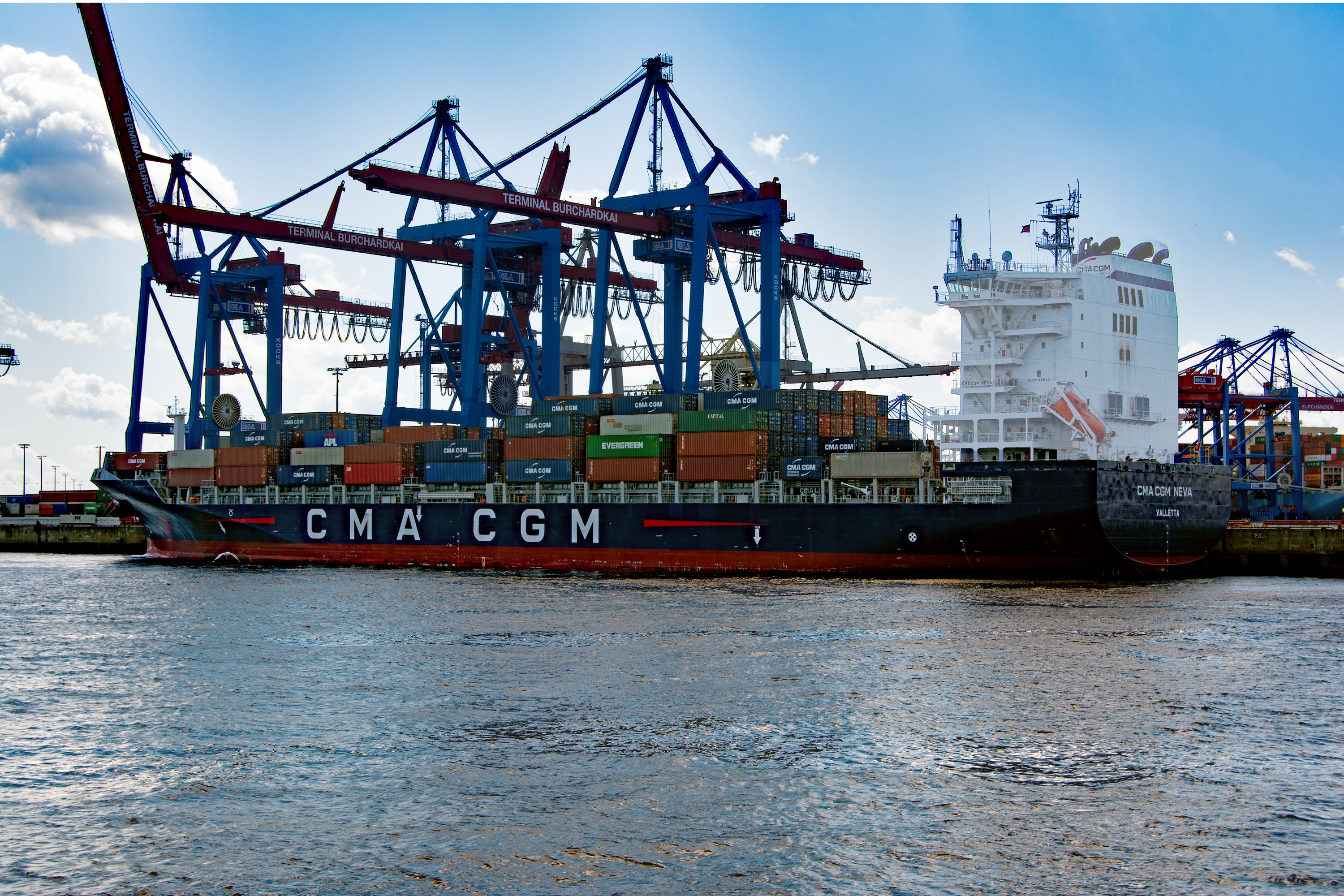 A closer look at a container ship loading/discharging. As you can see this photo was taken against an extremely bright sky.