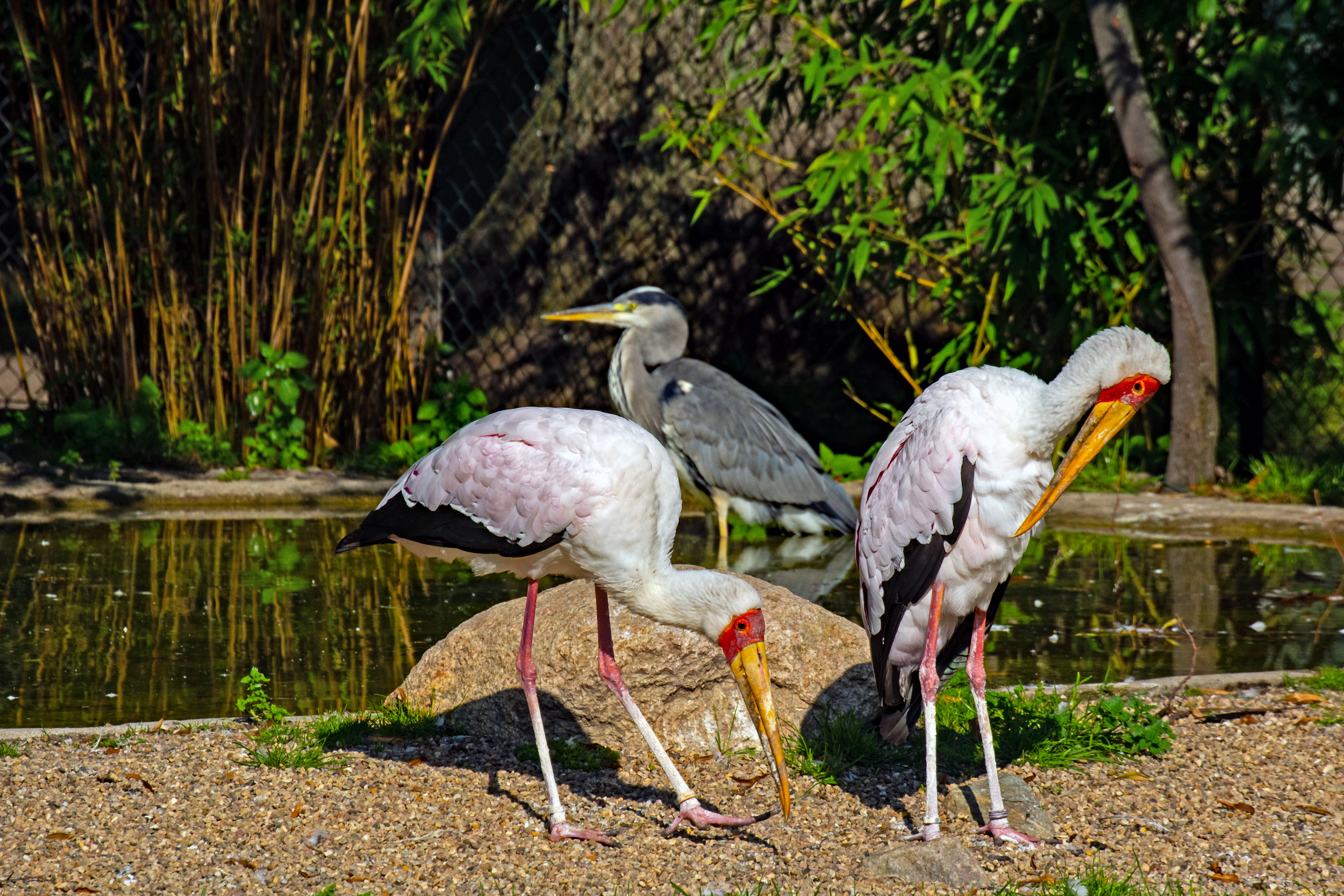 It looks like that the two in front have dropped something and that the heron behind is in charge and has given the order "find it".