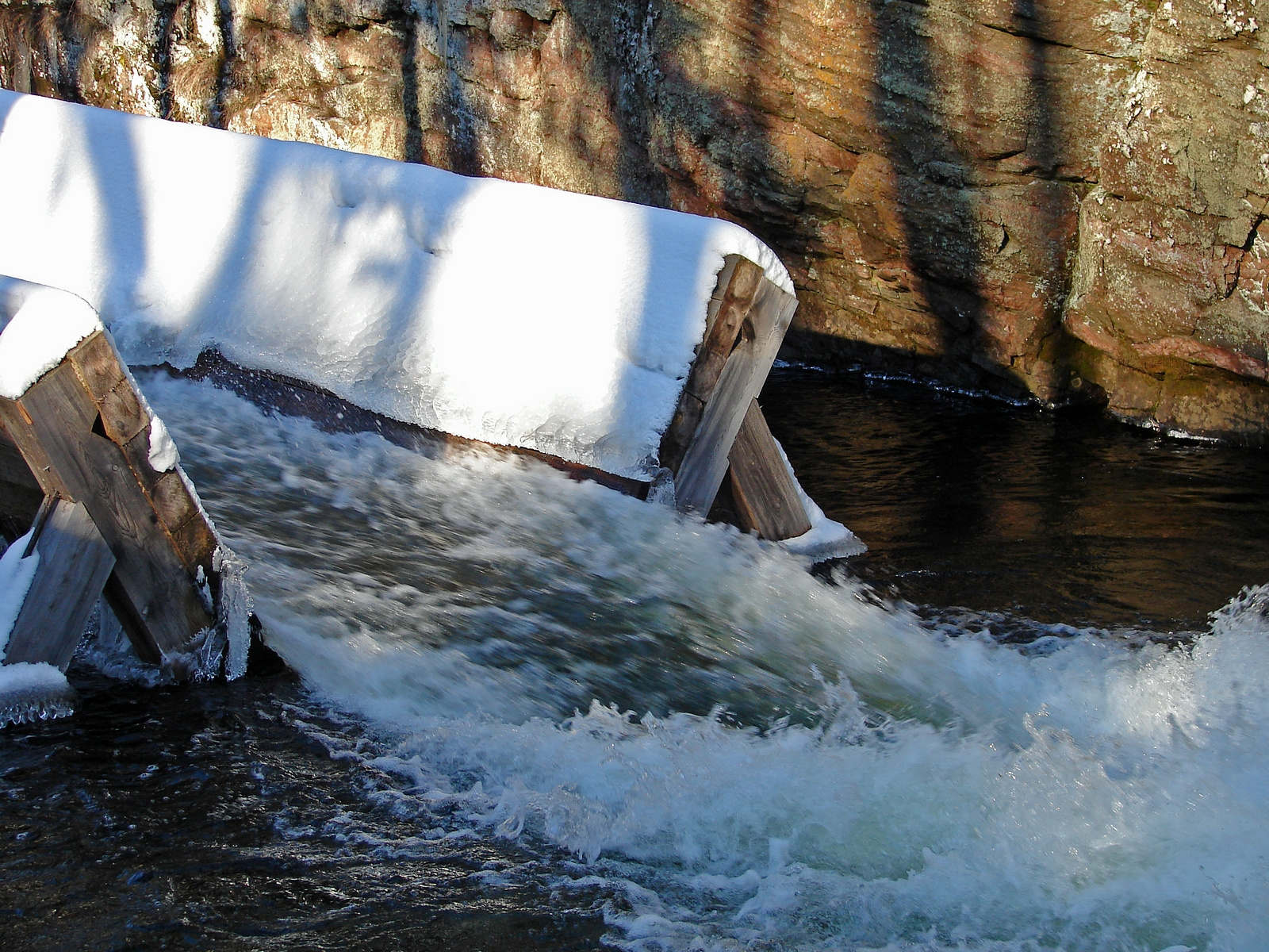 A Log Chute is a man-made trough used to carry logs over rough river landscape to a downstream sawmill. At one time Ontario(Canada) had thousands made of maple/beech/hemlock. Now there's only one remaining. Log Chutes were always attached to dams built by the logging companies. These dams, of timber crib construction, held back the water until the spring log dirves when thousands of logs would be flushed downstream in a mighty torrent. A reconstruction project spanning 1999-2005 saw the chute returned to it's former glory. Constructed of 50,000 board feet of locally felled and milled Hemlock. Additonal information can be found at www.standhopemuseum.on.ca