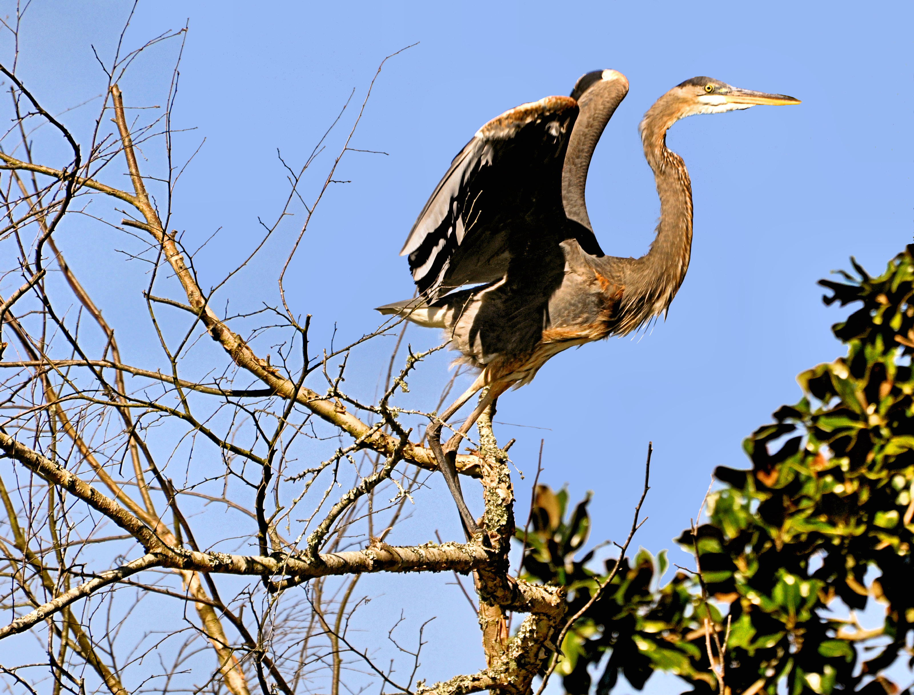 I went out to walk the dog...without my camera and spotted this guy in the trees so I went back and got my camera and he waited until I got back and then said...gotta go!! :) Steve
