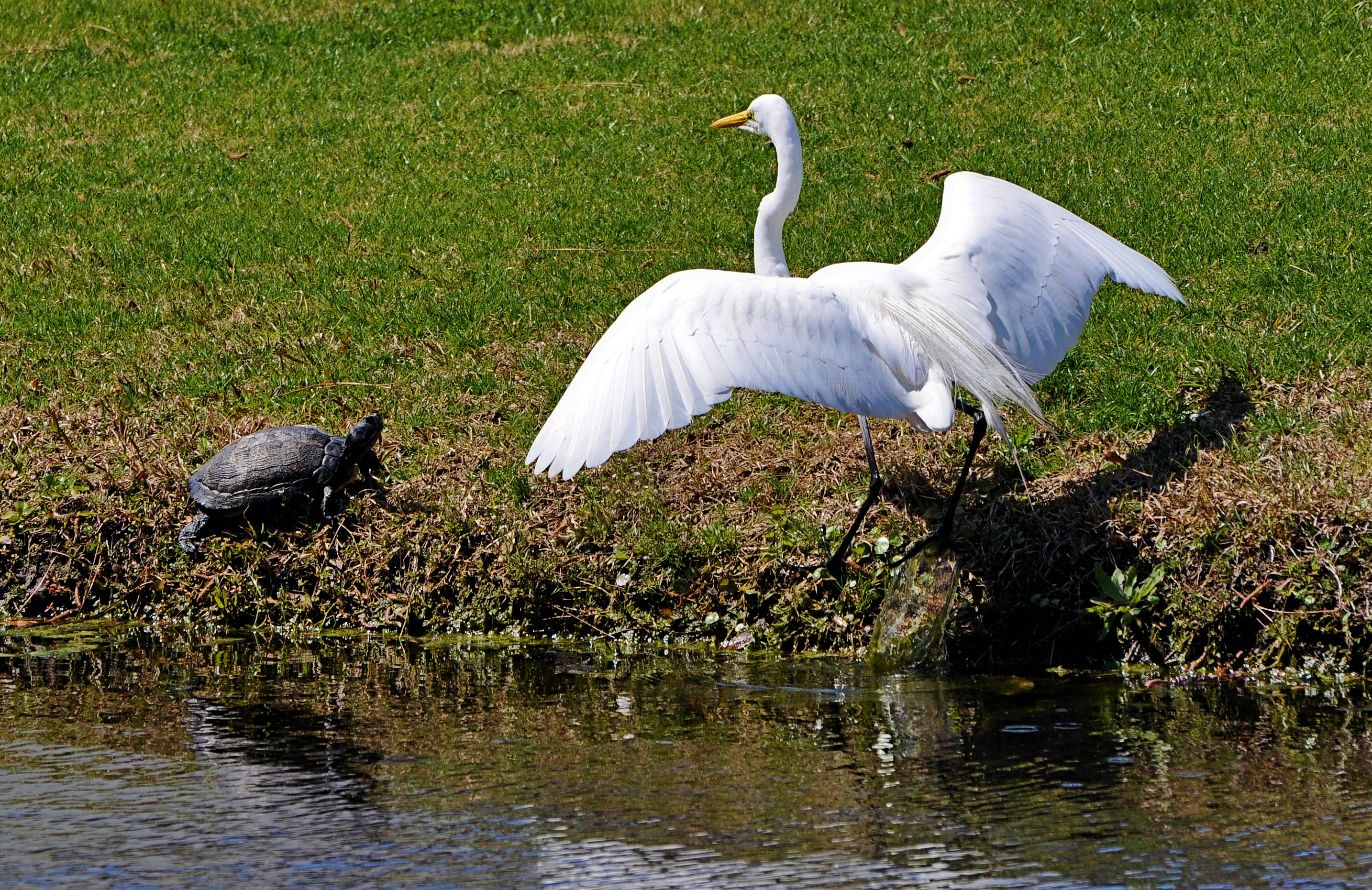 The turtle was telling the egret he did not care how big he was this was his pond first! LOL :) Steve