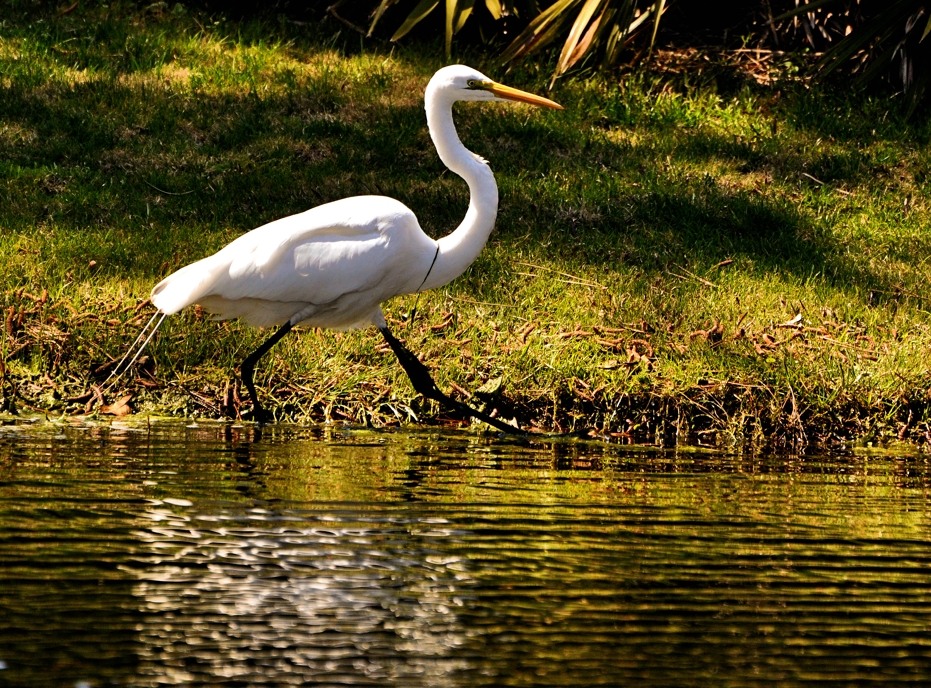 As you can see from the grass around his neck he just came up empty on his last try for a fish! So he is now going to a new spot to try his luck!! :) Steve