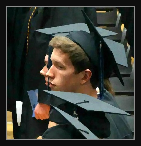 Grandson on graduation day contemplating what was to come I guess by the look on his face. I used the paint effect in PaintNet to add to this view.