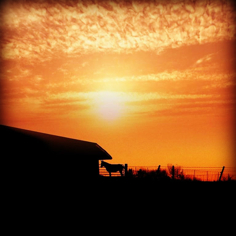 One lonely horse getting ready to go in for the night. Loved the orange sky.