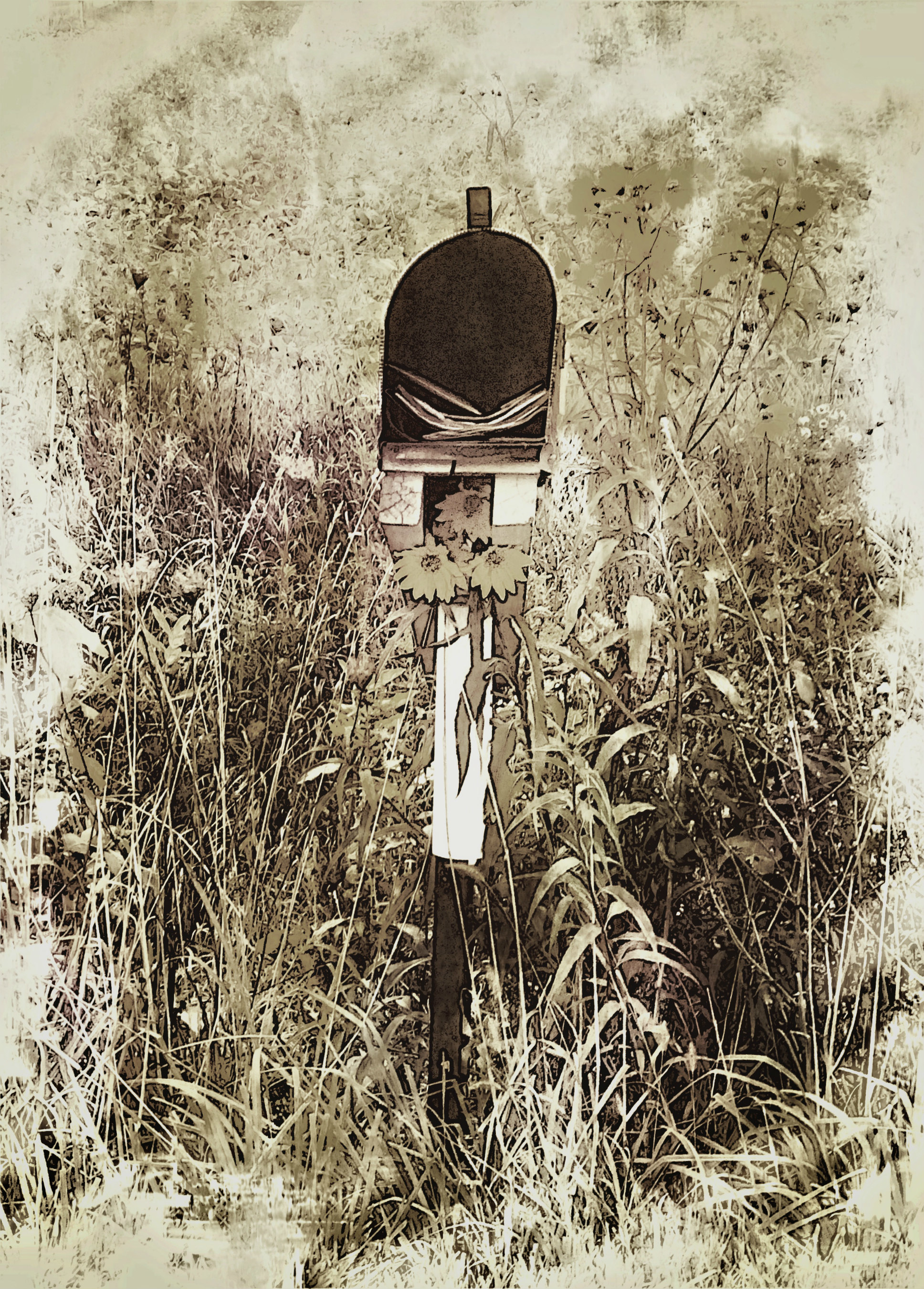 Folks better get their mail in before the rain comes. This was a farmers mailbox, don't know how long the mail sat there. Guess anyone could have gone by and picked it up. I used a little sepia play on it.
