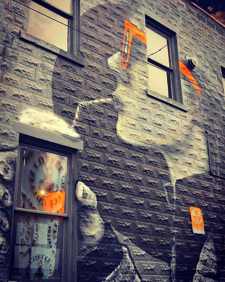 A mural on a wall, drinking through a straw just like I like to do with coffee. Thought it good for Monday.