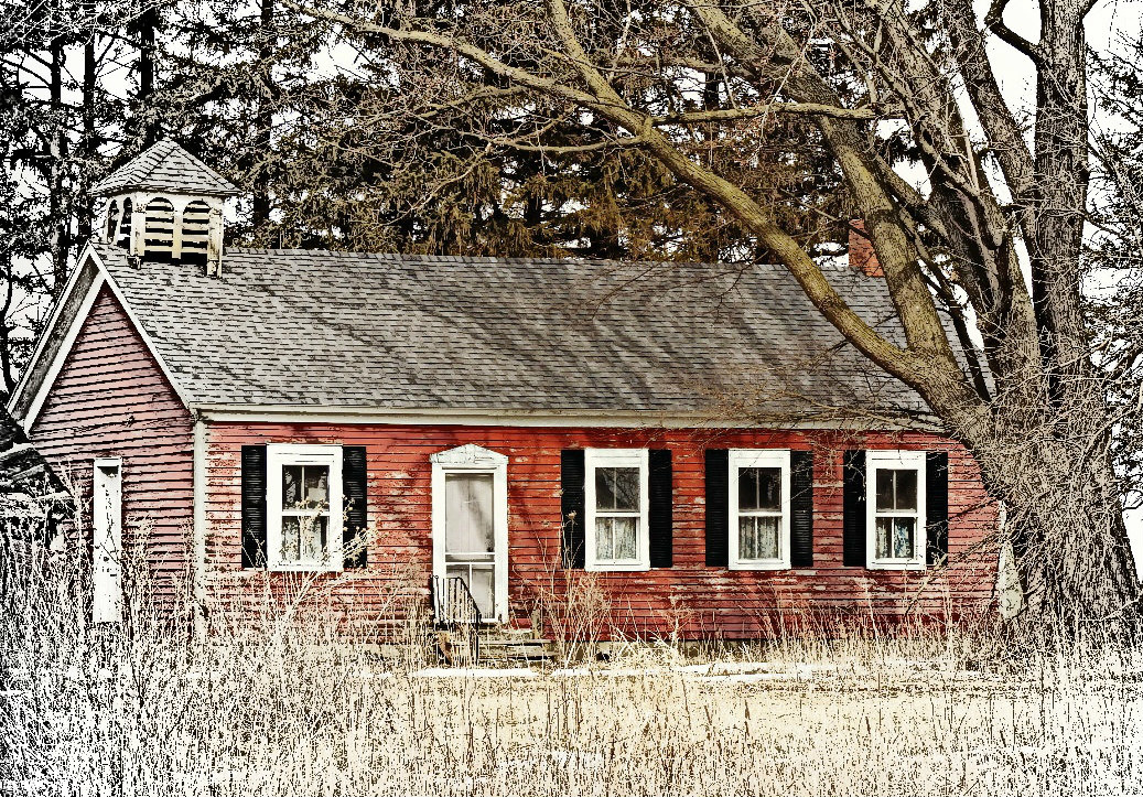 Found this little old red school, at first I didn't think there was anyone in it, but when I got to the other side there seemed to be curtains in the windows. The one end had fallen down but the rest looked to be livable.