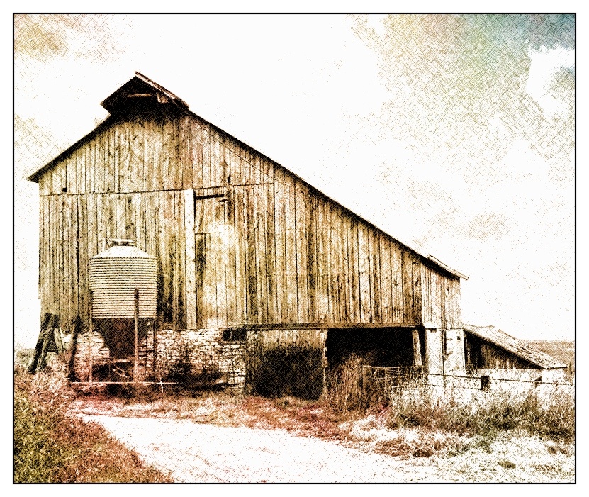 A barn in the country here, touch of sepia and a tiny bit of color.