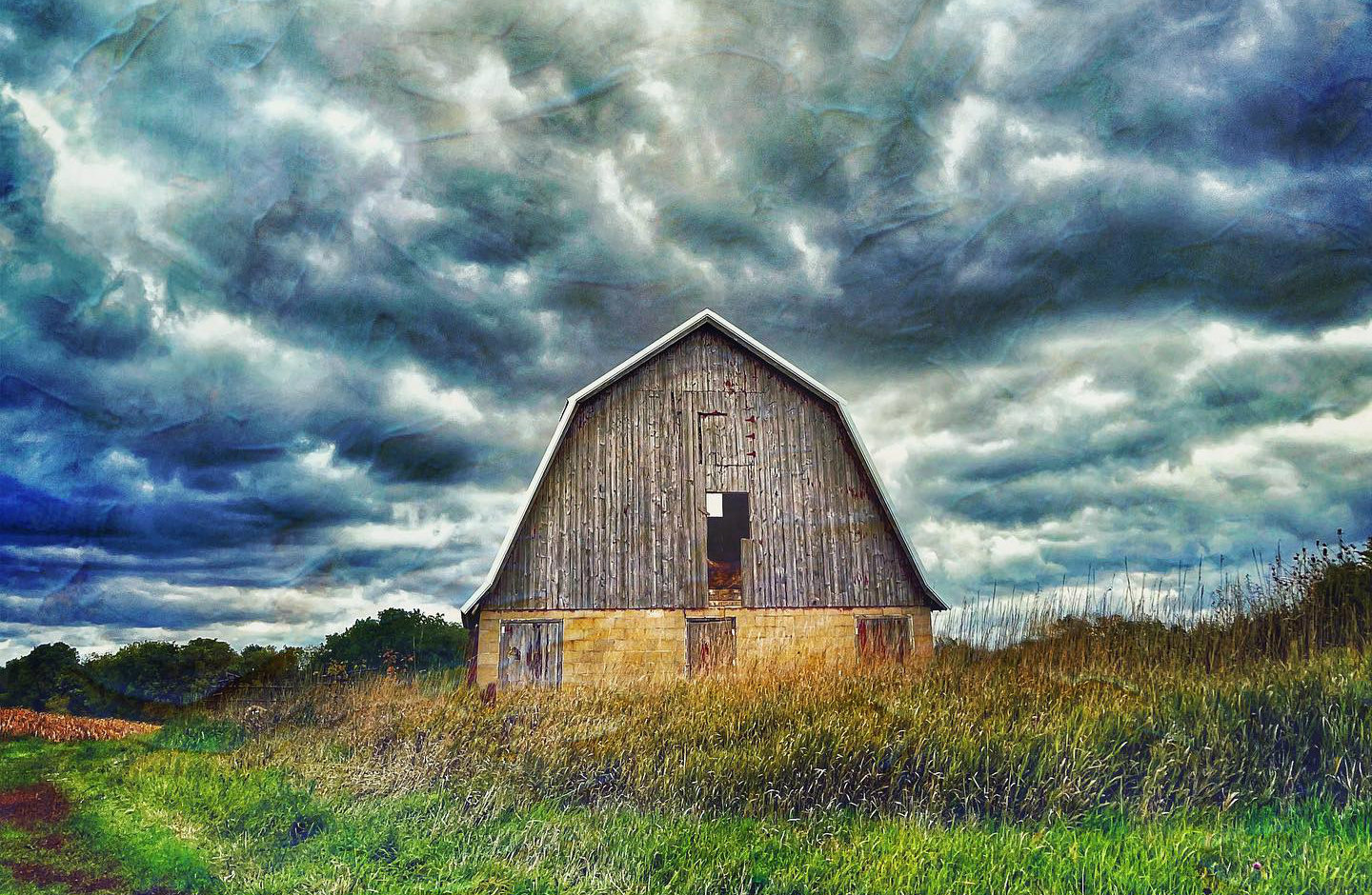 Small barn out in the open, left to weather away. It looks like it could hold up quite a while yet though. I like the roof line, guess that is what caught my eye.