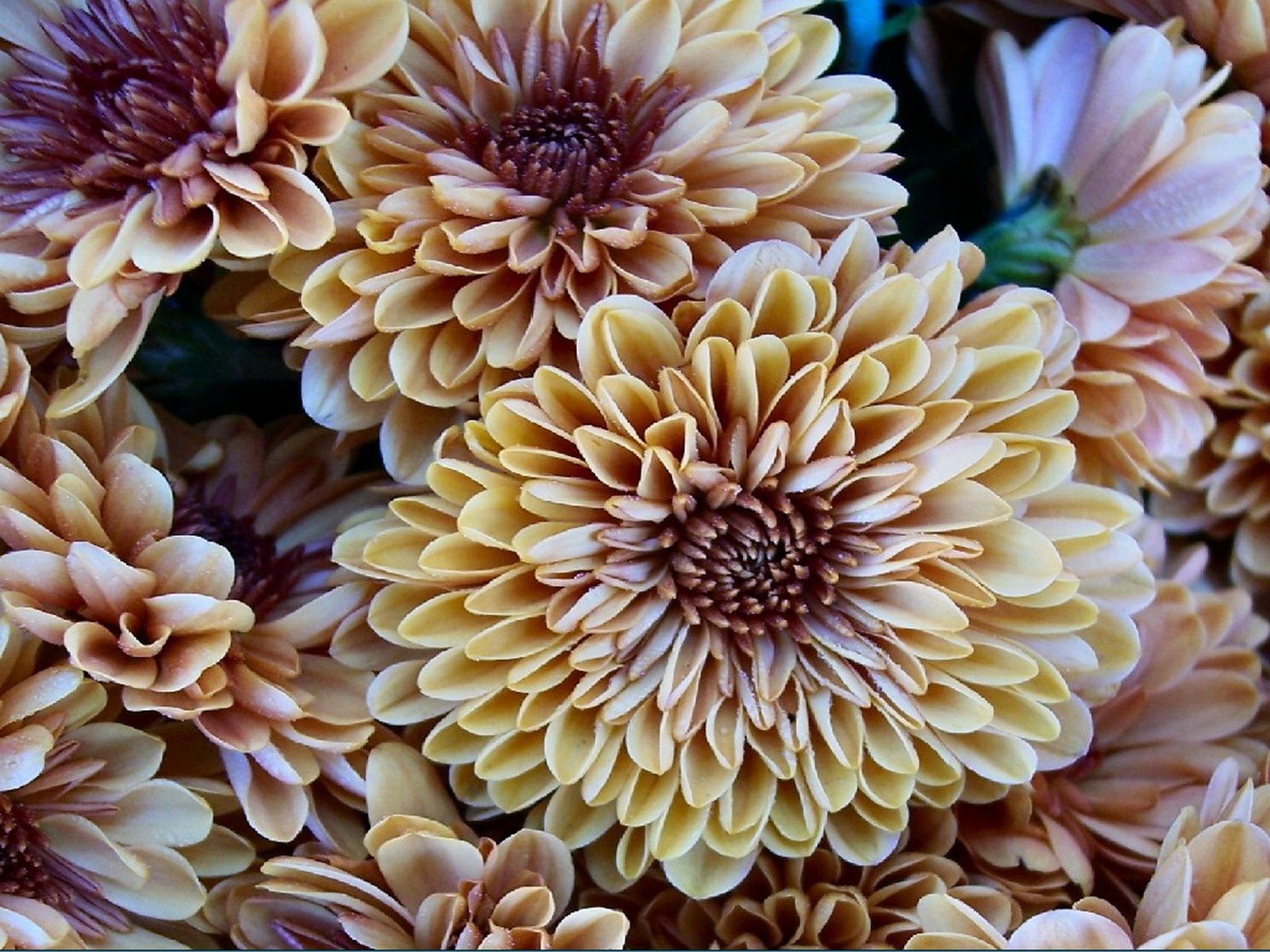 Everyone was setting out different kinds of mums among bales of hay. It must have been a fad or something. But I liked the flowers and decided to get a closer view. When I brought the capture home and processed it behold it took a strange appearance to me. It looked like a bunch of shells put together to form flowers (you know the shells you eat in soup). It had funny textures as well.
