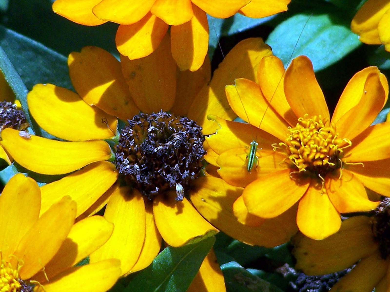 The gold is everywhere with just a dash of blue. How about a grasshopper with abnormal Antanae.