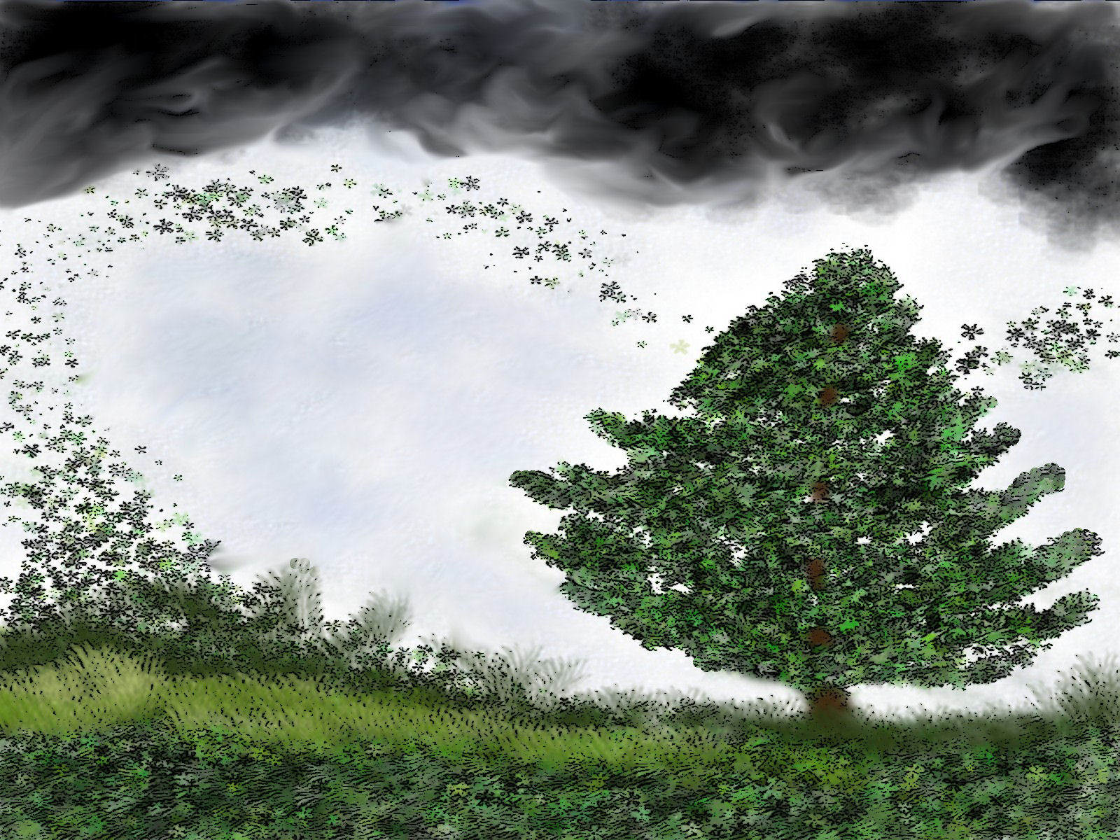 A storm is brewing and the wind is blowing. Hold on to your hat. I used Project Dogwaffle to create this little painting. The program is a freeware and has some fine features for those who might not afford a more powerful graphics program for the time being. It gives you a nice array of brushes and presets. Some of the features are not as user friendly as I would like them to be such as selection tools. But it is a fun little program.