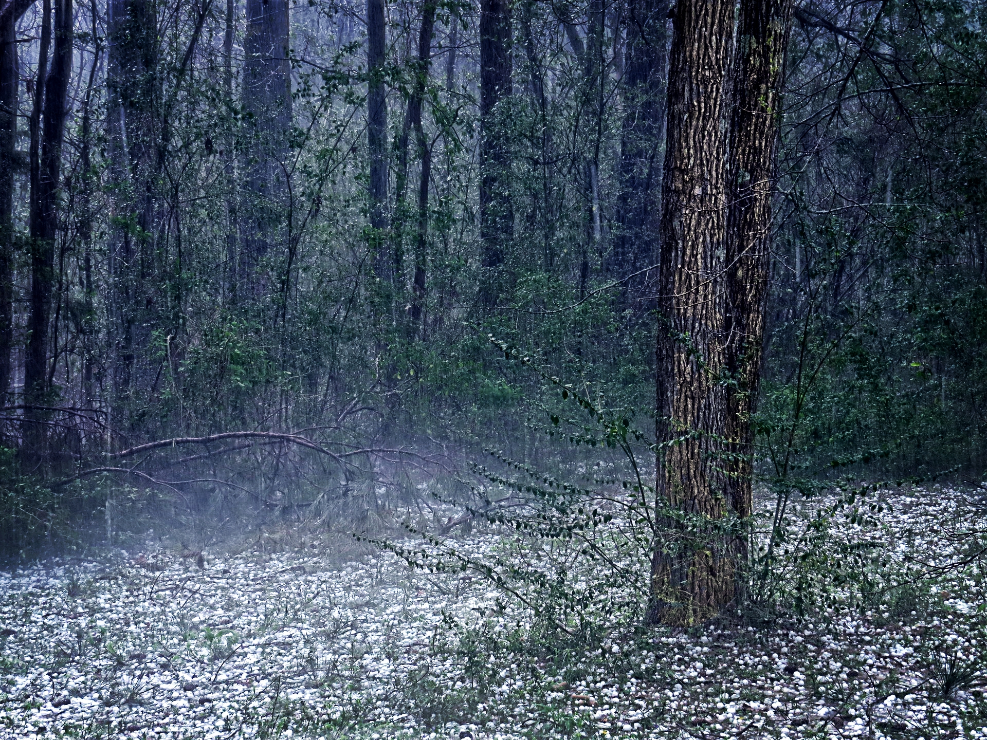 No this is not a Winter scene. We just had a big hail storm . This was taken while it was happening. Very scary stuff. Limbs falling and sounded like rocks falling from the sky. It covered the ground with golf ball size hail.