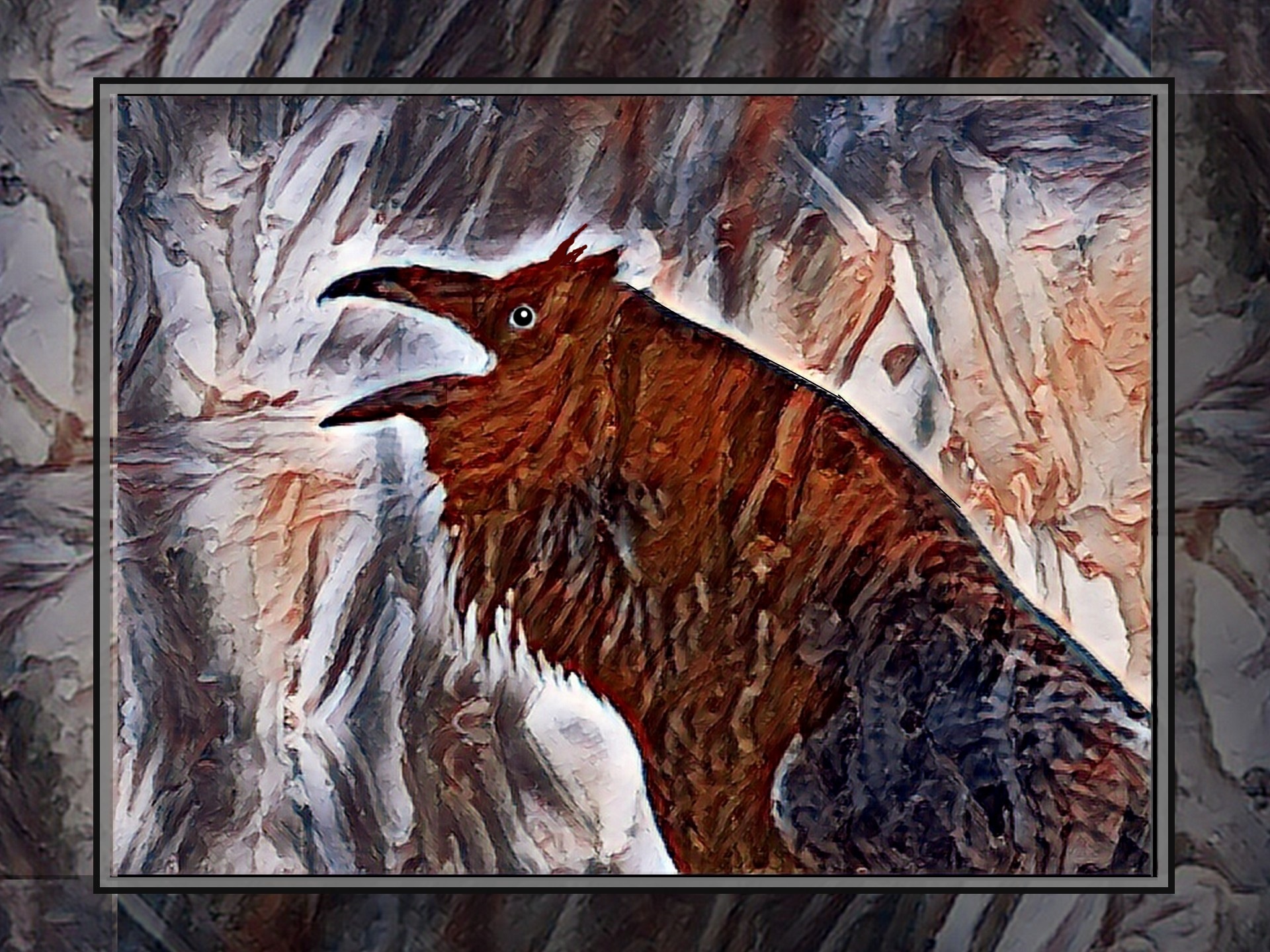I had previously taken an image of a raven and I really liked the pose. But alas when I got home and viewed it larger it was all blurry because of my unsteady hand and lack of taking any further shots. I really wanted to share it with you and almost discarded it altogether. Instead I used it for the base image and painted over it. I hope you enjoy it anyway. Since it really is painted I thought it belonged in the illustration category.