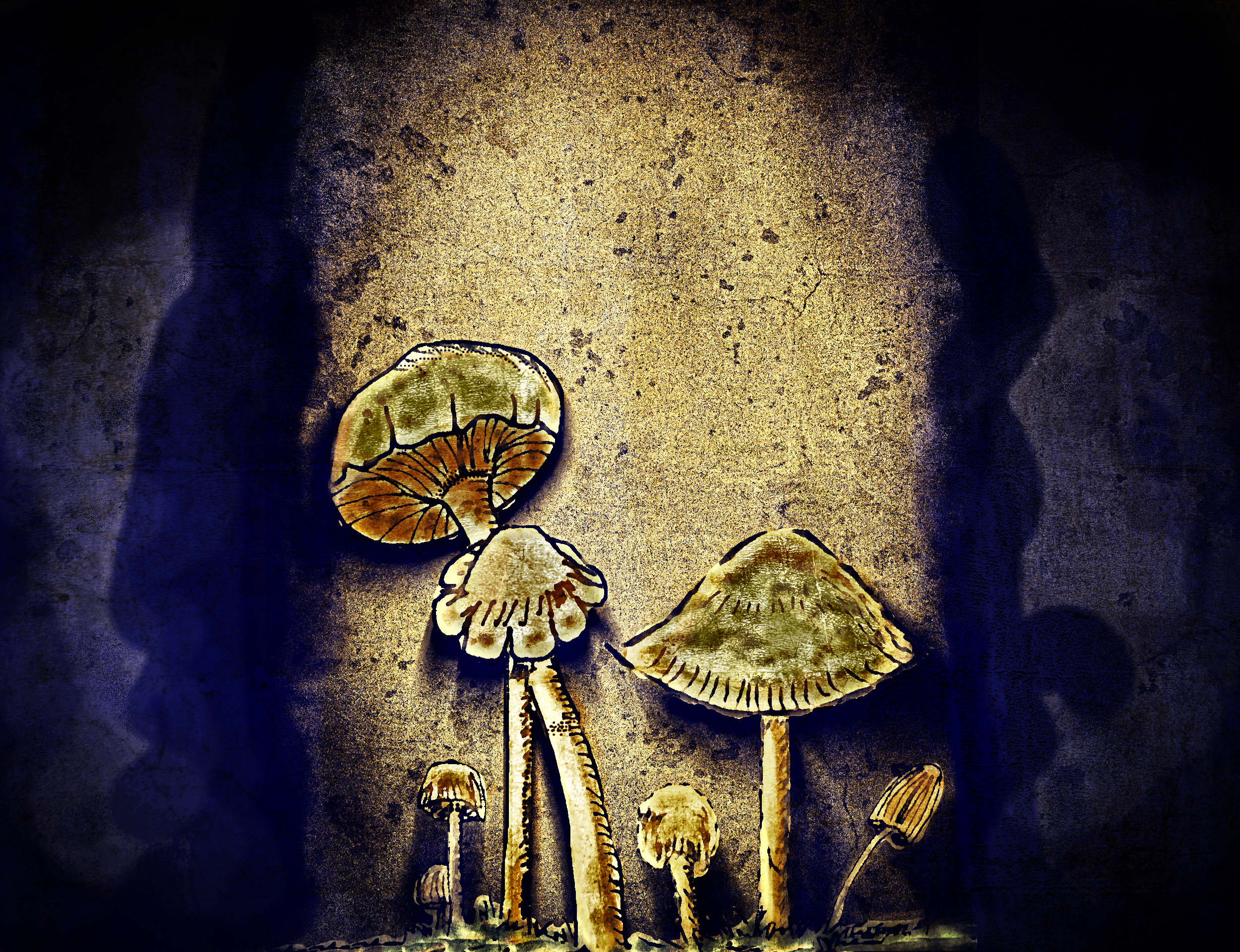 I hear that mushrooms favor the dark. I put them where I thought they might be the happiest. Anyway, it made me happy.