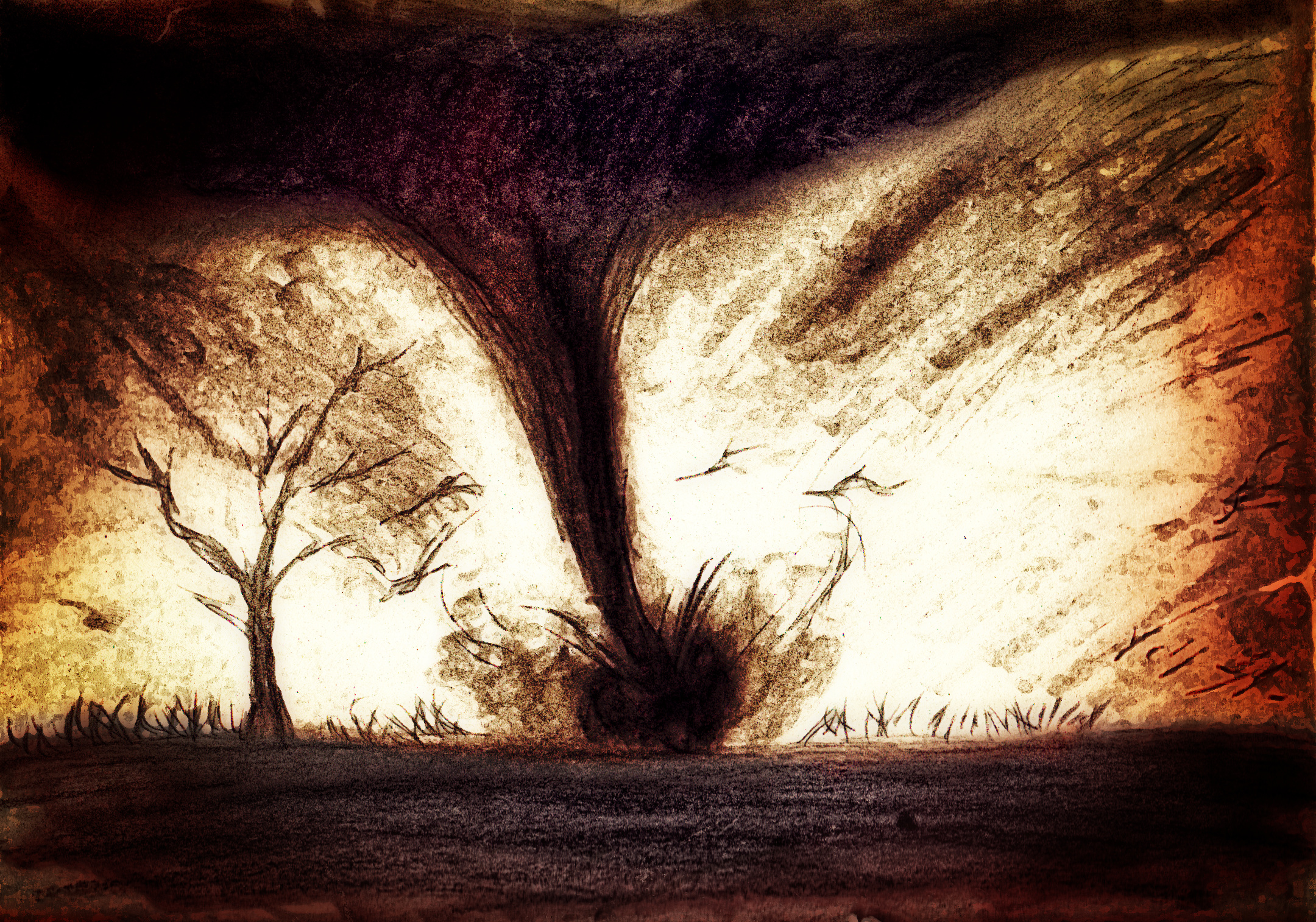 All the rough weather and devastation on the east coast got me thinking about cyclones and such. Used a soft charcoal stick and blending stumps for the main body and a soft stencil brush to spread the charcoal and a woodless pencil for the details. Applied a light filter in Photo Effects 4. Darkened it a bit in Photoshop.