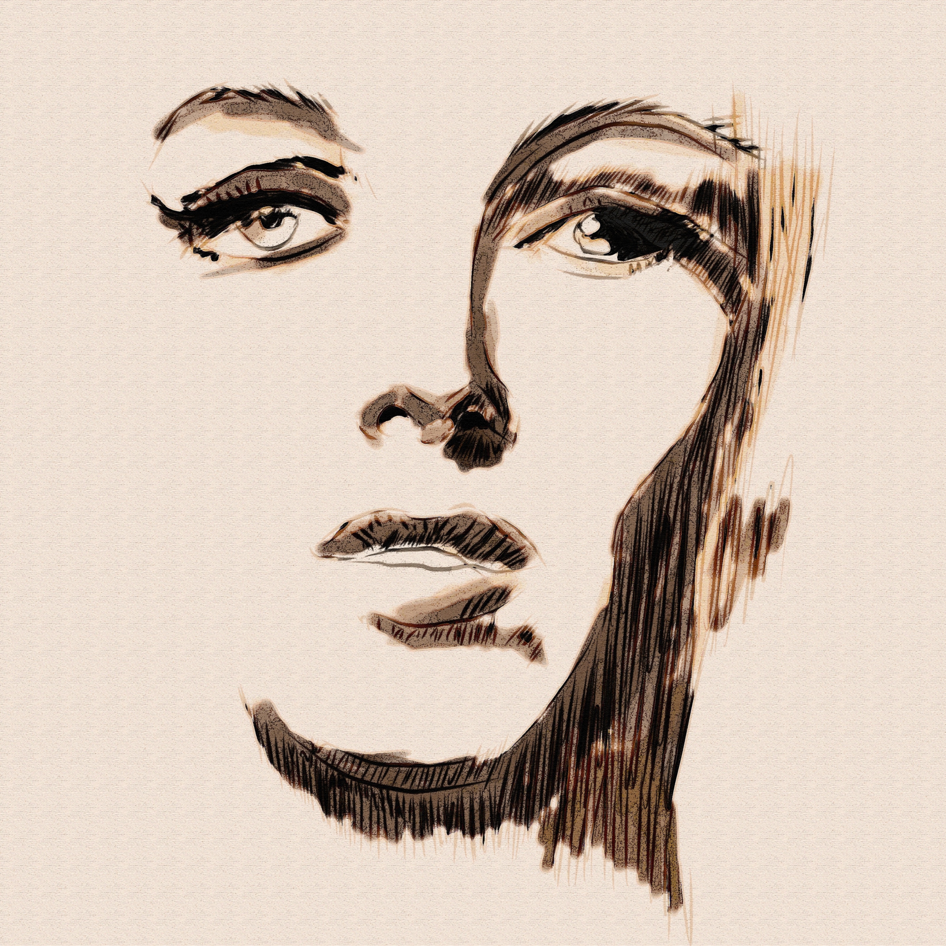 I sketched this out in MediBang Paint Pro with the sharp sketch pen and the watercolor brush. I also applied a light texture for the canvas effect.