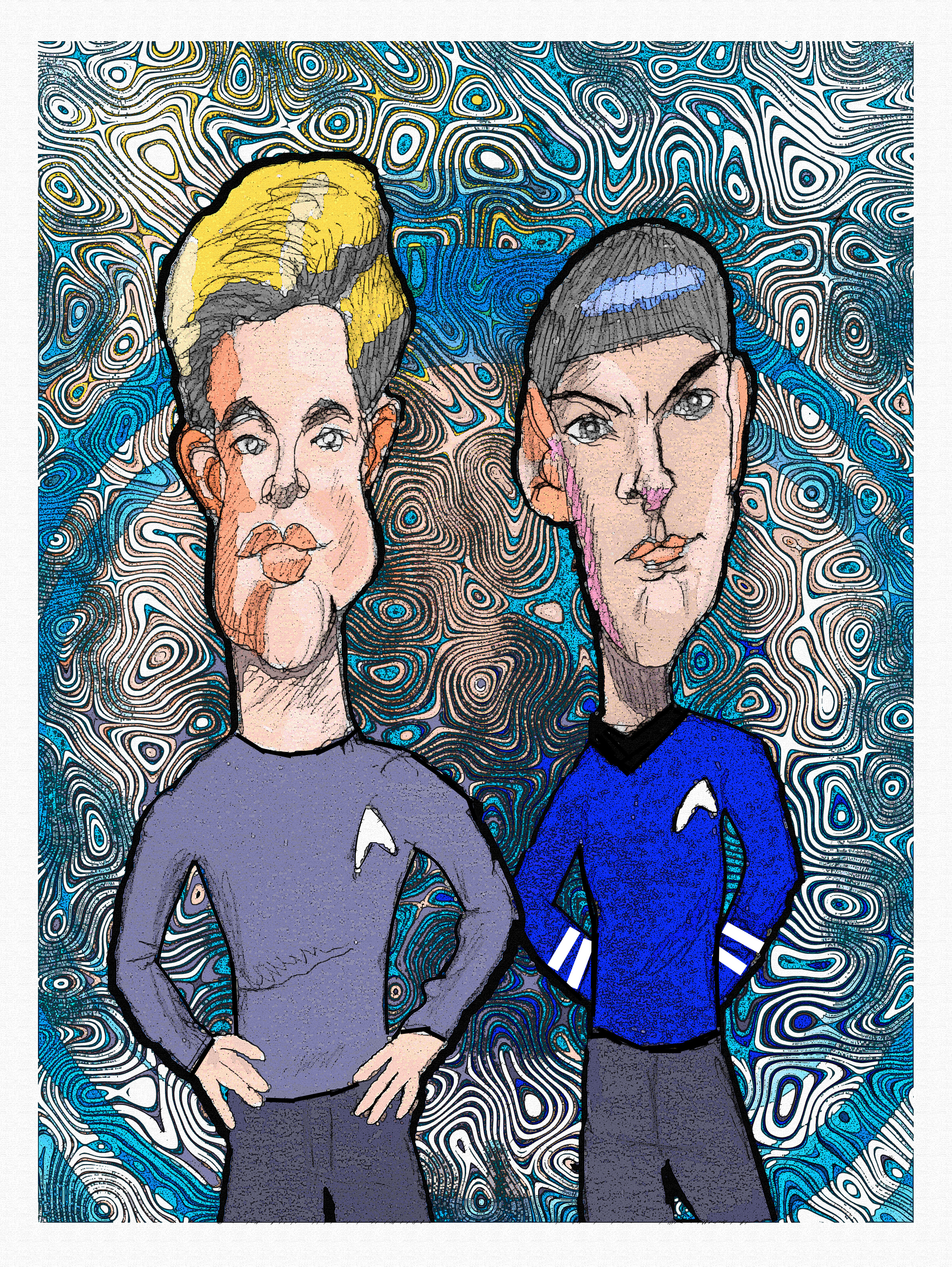 Here is my cartoonized version of Kirk and Spock for my SNATM selection, Star Trek: The Future Begins. Hope you enjoy it.