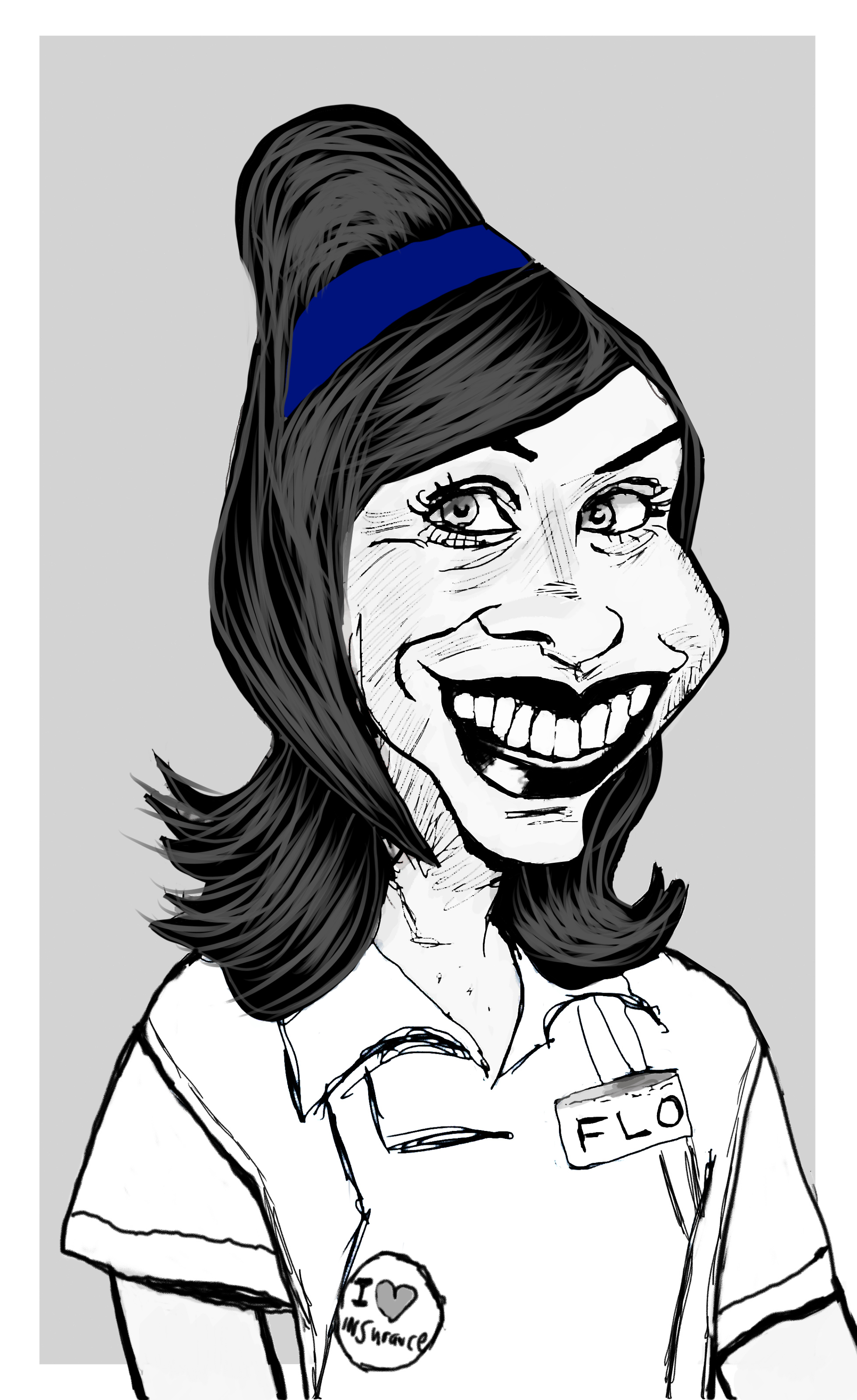 I've tried to do a caricature of Flo from Progressive. Her real name is Stephanie Courtney an actress and comedian.