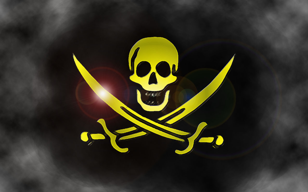 A simple looking creation that yet took me hours to do... based myself on the original pirate flag of Calico Jack, also known as Jack Rackham. I just loved the idea of mixing a pirate flag with gold. And not without a dose of canon smoke to add to the dramatic effect :)