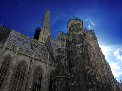 The north tower, planned as a twin to the south tower (you can see in the background), has not been completed and is only half as tall, at 68 meters (223 feet). It was given a temporary cap that the Viennese call the "water tower top" when its construction paused in 1511. Construction has not yet resumed.