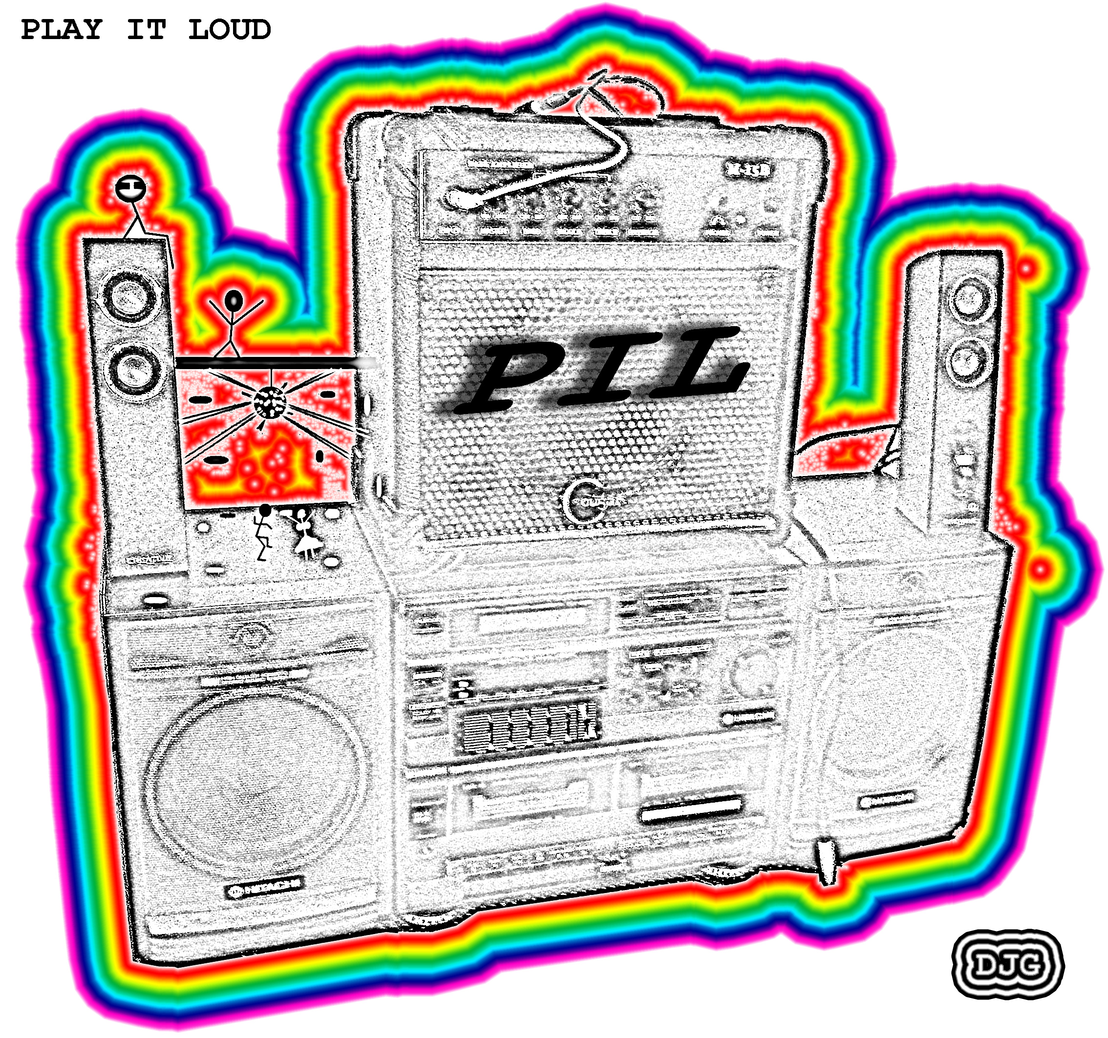Had to become familiar with Photoshop for a uni course, so decided to mess around with an old photo of a rather silly hifi I "made" with several speakers.... Anyway, decided to make it look like an album cover for a fictitious band called "PIL", although upon googling it, I find that there already is band called PIL :(